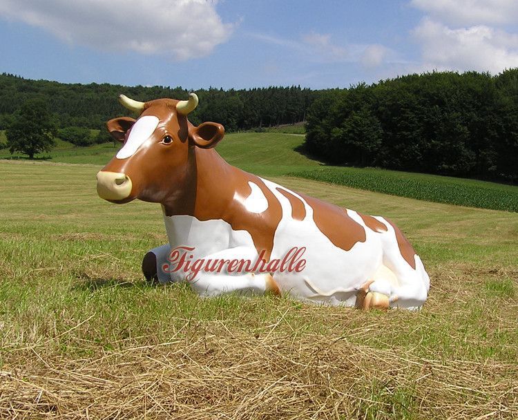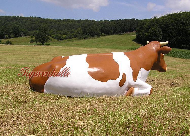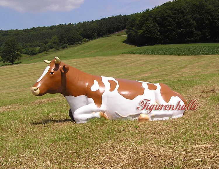 Kuh liegend Figur braun bunt Statue Skulptur Gartenfigur Garten groß Deko