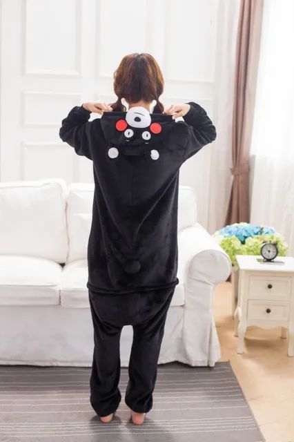 Kumamon Schwarzer Bar Onesie Erwachsene Unisex Tier Cosplay Pyjamas Plusch
