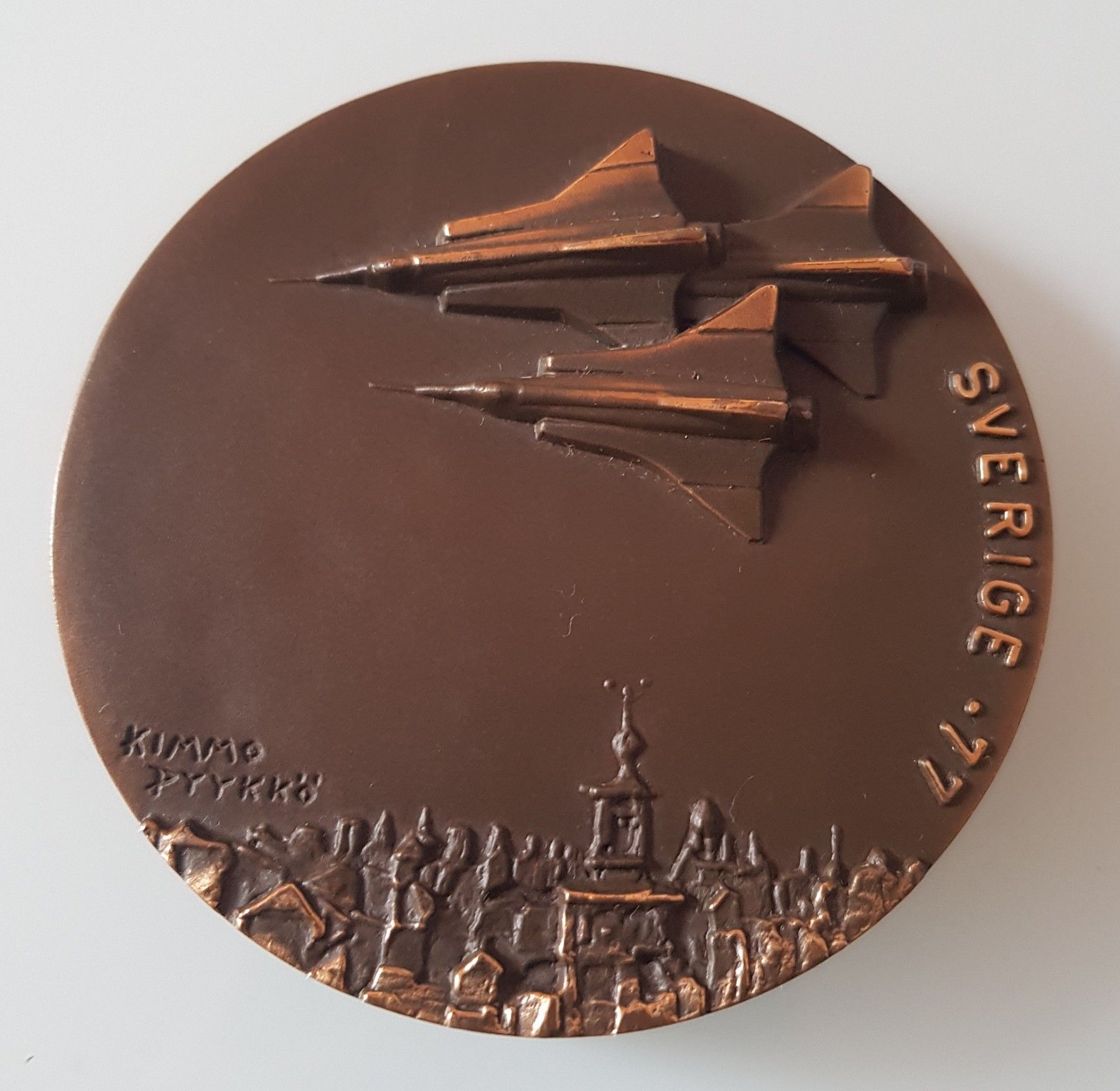Kunst Medaille von Kimmo Tapani Pyykkö zu Krieg und Frieden Schweden 1977