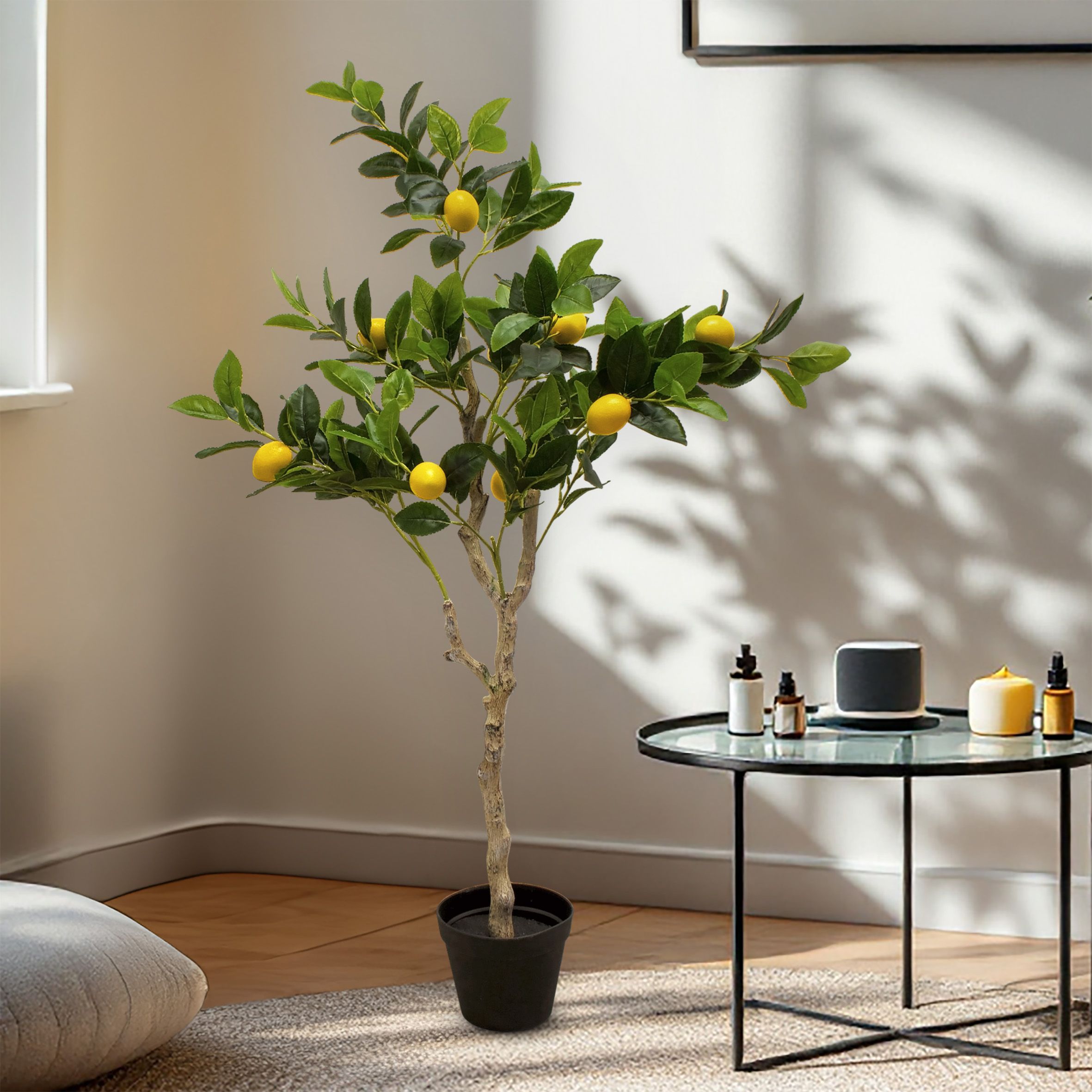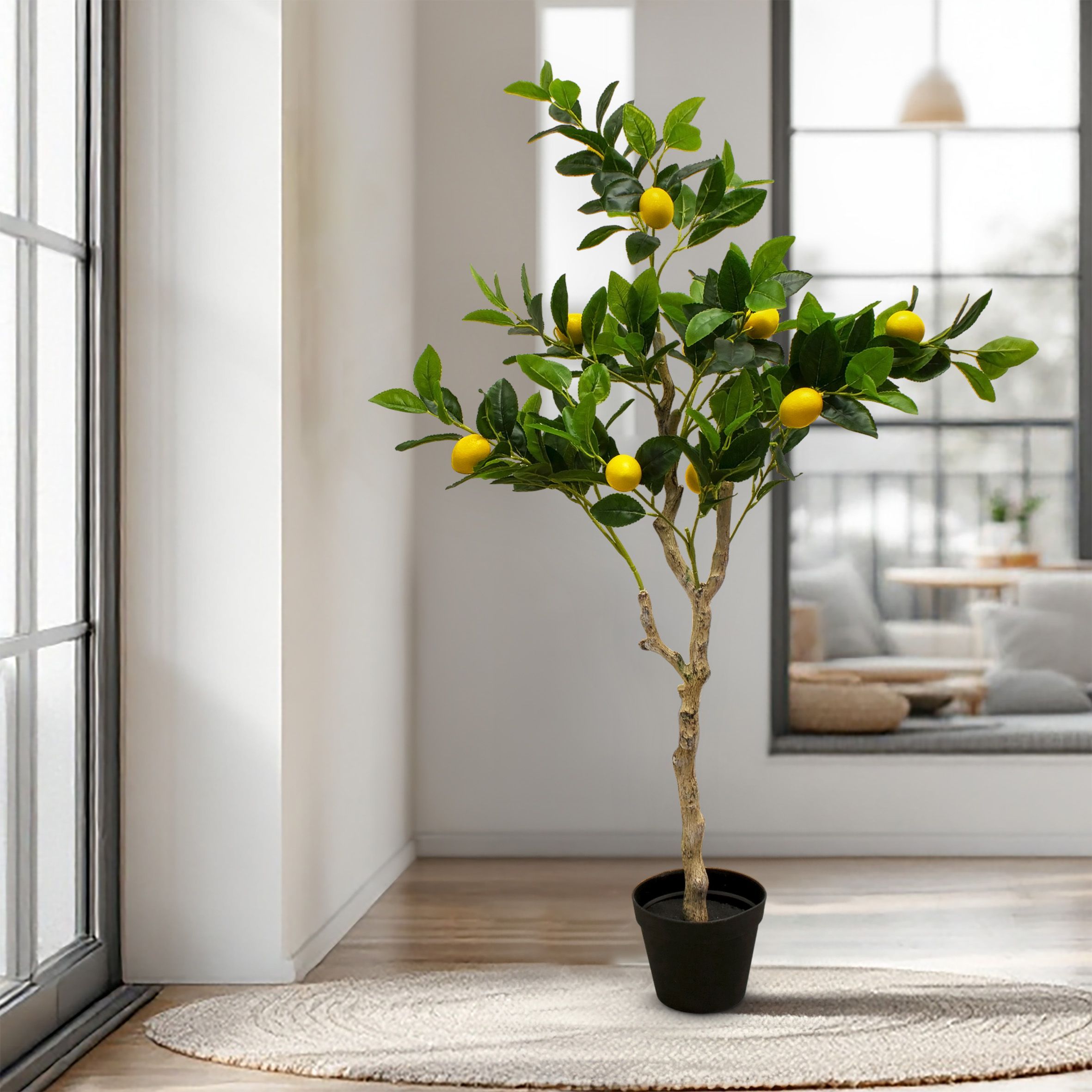 Künstlicher Dekobaum mit 10 Zitronen bestückt im schwarzen Blumentopf ca. 120 cm Höhe