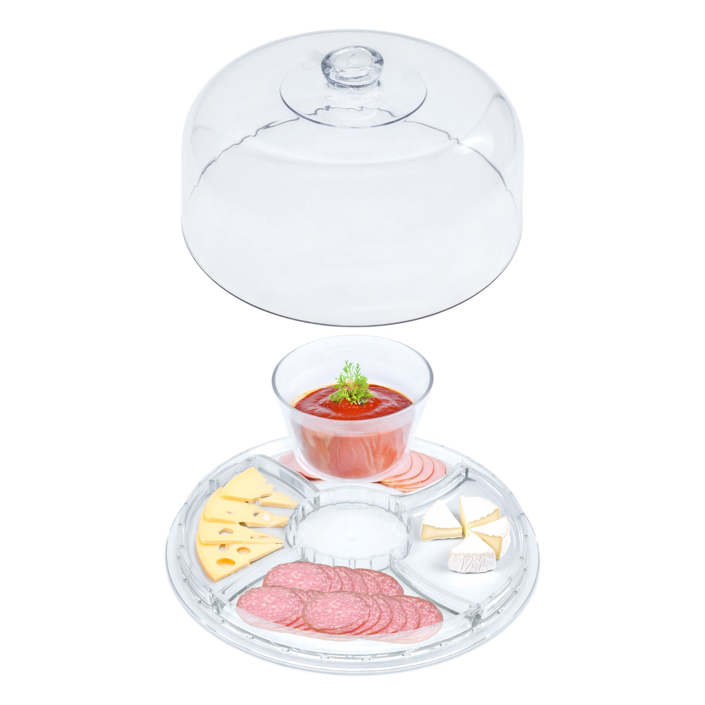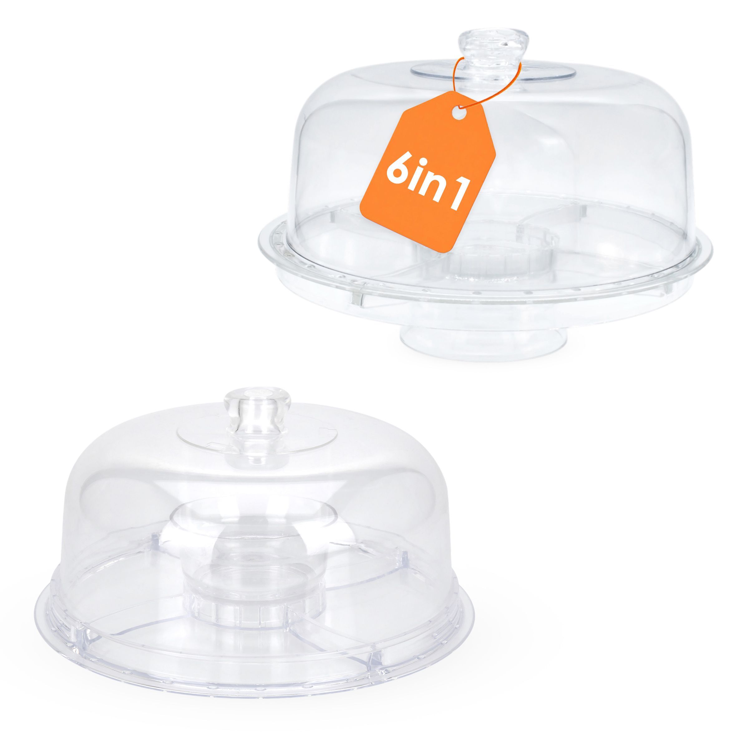 Kunststoff Servierschale 6in1 m. Deckel - 30 x 20 cm - Transport Snack Dip Box