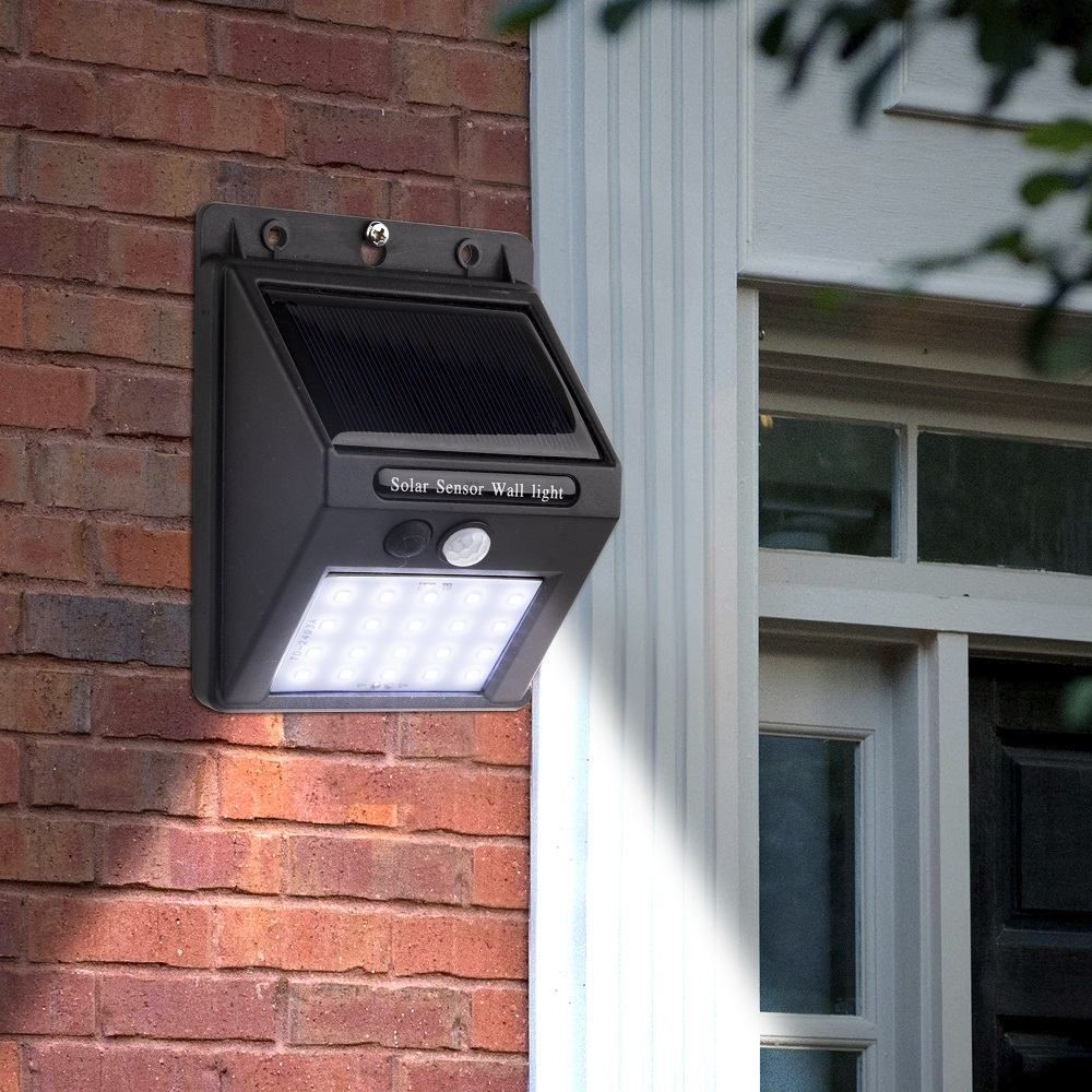 Kunststoff Solar Wandleuchte 20 weiße SMD LED PIR Sensor 12,3x9,9x5cm 35300