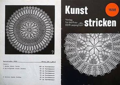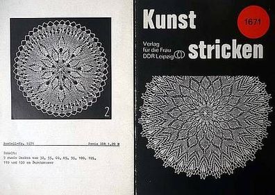 Handarbeitsheft aus der DDR Kunststricken-9 Decken aus dem Verlag für die Frau Bestellnummer 2138 Format 16x22cm Das Heft besteht aus einen Umschlag und aus Bögen Inhalt: Vorlagen für 9 kunstgestrickte Deckchen In einer anderen Auktion habe ich noch ein weitere Heft aus dieser Reihe eingestellt. Bei