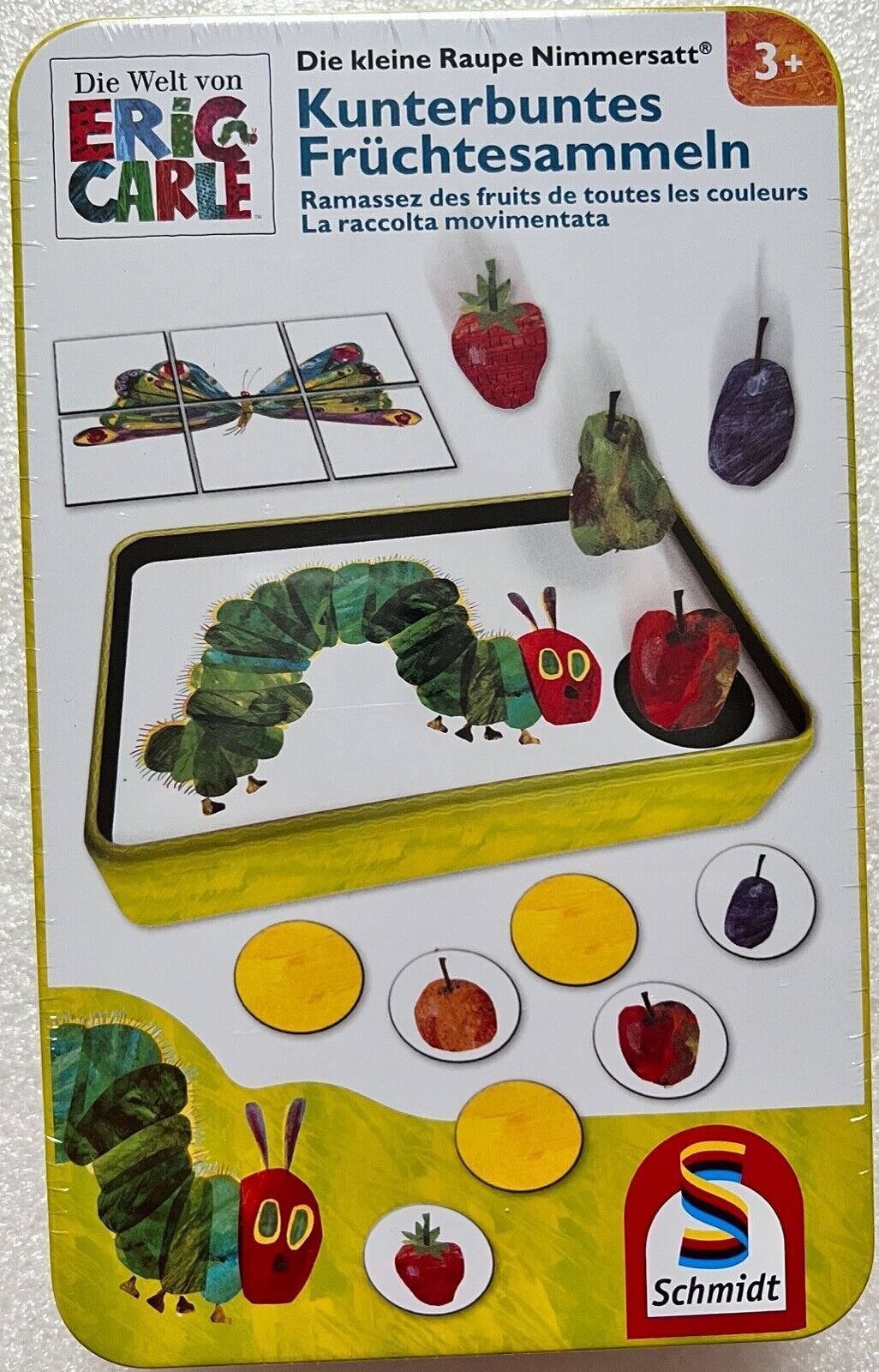 Spieleranzahl: 2 bis 4 Spieldauer: 10 Minuten Altersempfehlung: 3+ Die kleine Raupe Nimmersatt - Kunterbuntes Früchtesammeln - Mitbringspiel Bevor die kleine Raupe Nimmersatt sich in einen wunderschönen Schmetterling verwandelt, müssen die Spieler sie mit vielen kunterbunten Früchten füttern. Apfel,