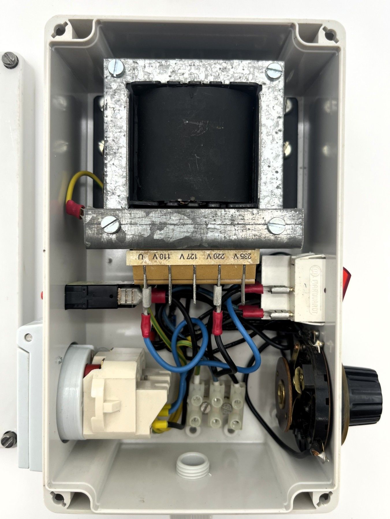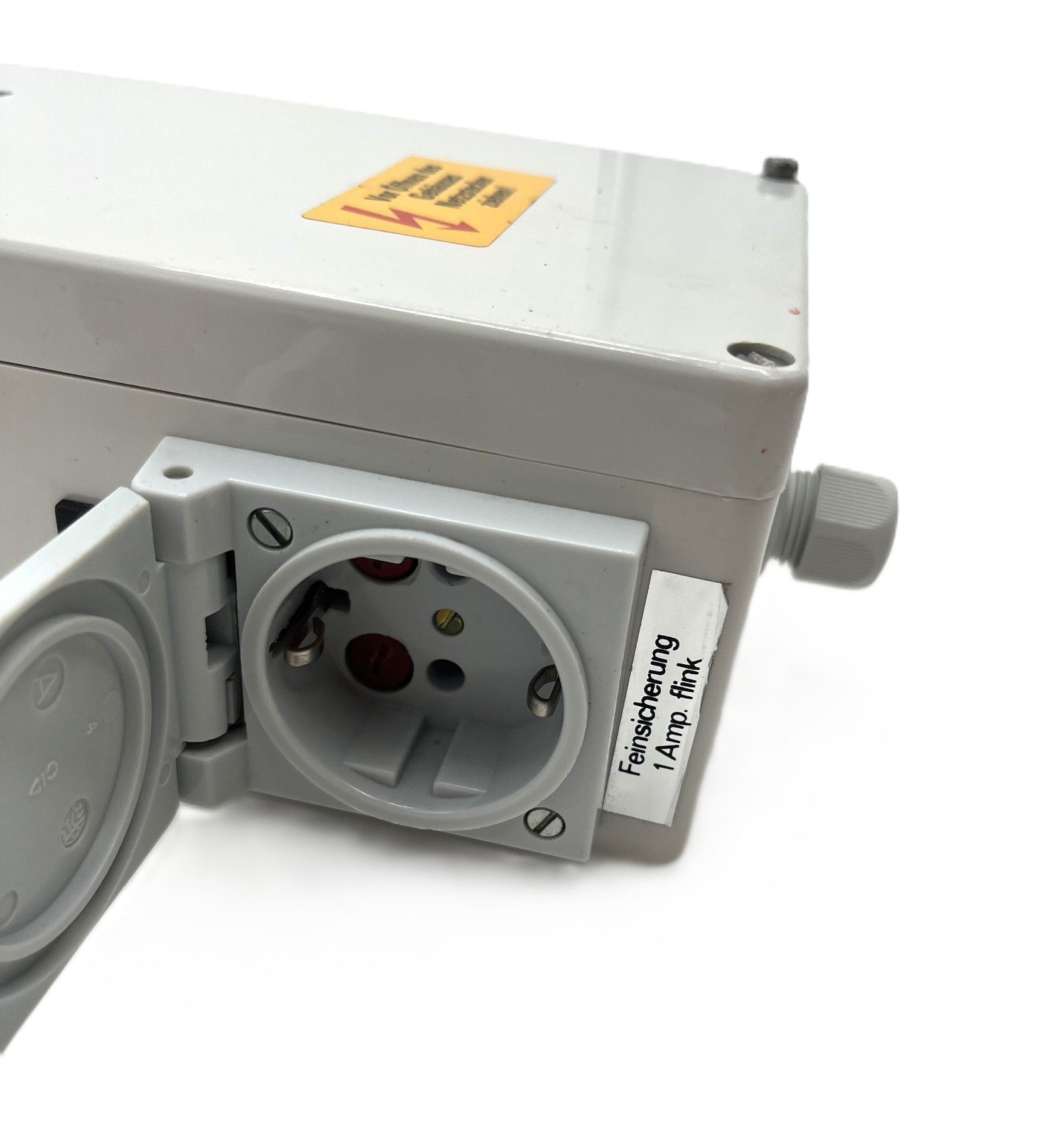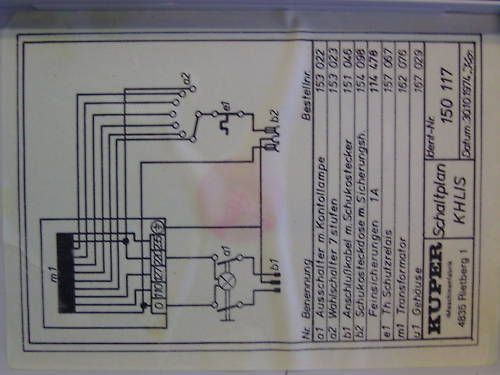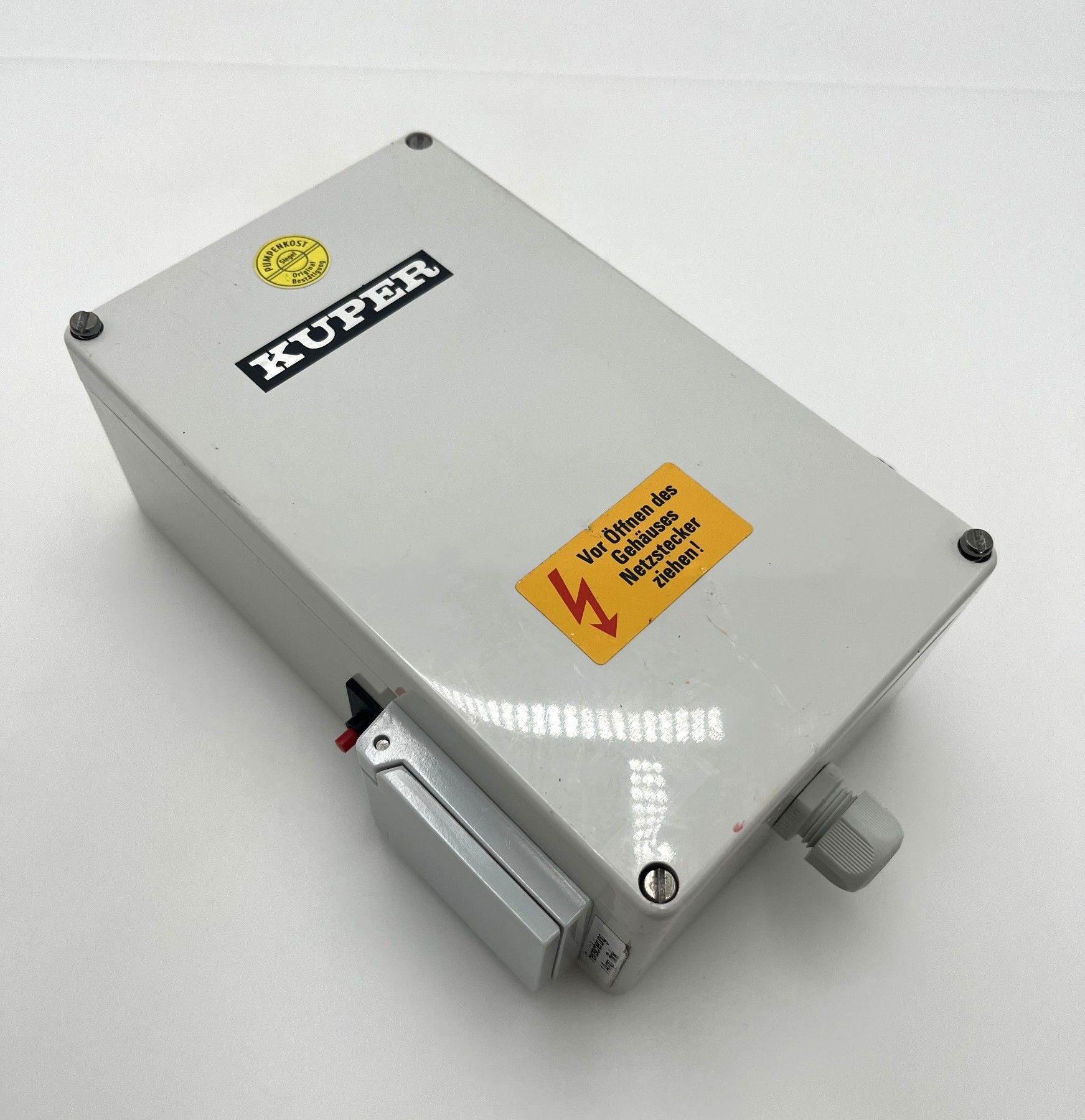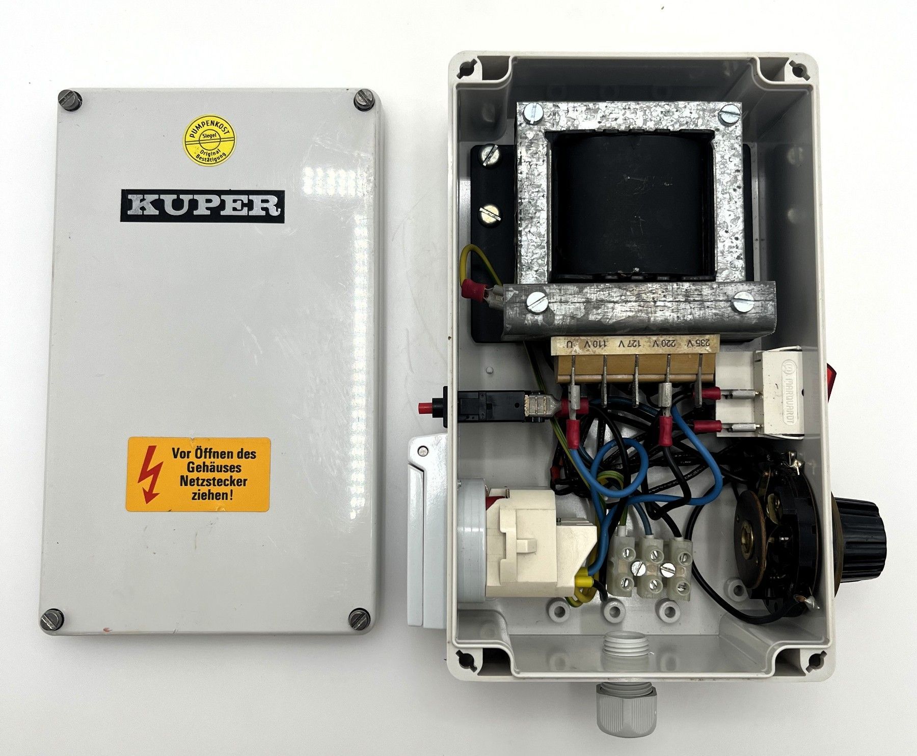 Kuper Transformator Typ KHL S – Nr. 5820 Technische Daten Steuerung: 7-Stufenschalter Absicherung: Ausgang über 0,6 A-Sicherungsautomat Zusätzliche 2 x 1 A Feinsicherungen in der Schukosteckdose Schalter: Hauptschalter für Ein- Aus Einsatzbereich: Ideal zur Ventilatorsteuerung Spannungen Primä