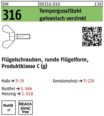 • Reyher Flügelschrauben galvanisch verzinkt DIN 316