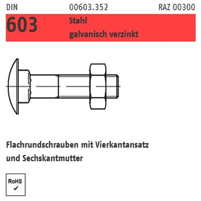 • Reyher Flachrundschraube mit Mutter galv. vz 6xXX mm