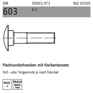 • Reyher Flachrundschraube ohne Mutter A2 Edelstahl 6xXX mm