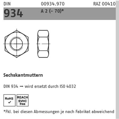 • Reyher Sechskantmuttern Edelstahl A2 MXX