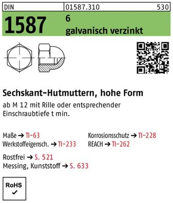 • Reyher Sechskant-Hutmuttern galvanisch verzinkt MXX