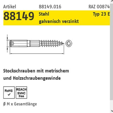 • Reyher Stockschrauben 23E galv. vz. M6 - M10