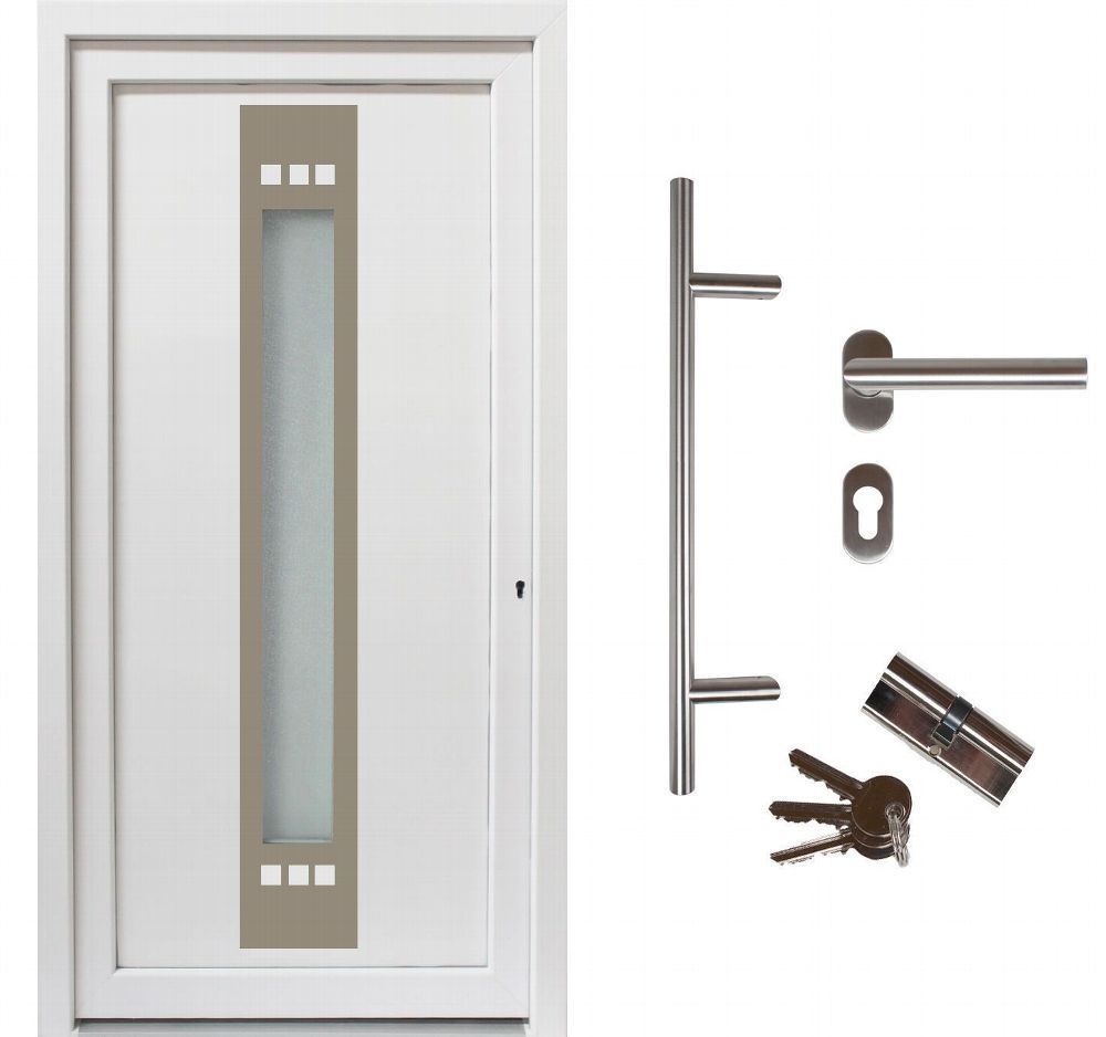 • Haustür kuporta Kunststoff > Santana < Nebeneingangstür Kellertür Stoßgriff-Set