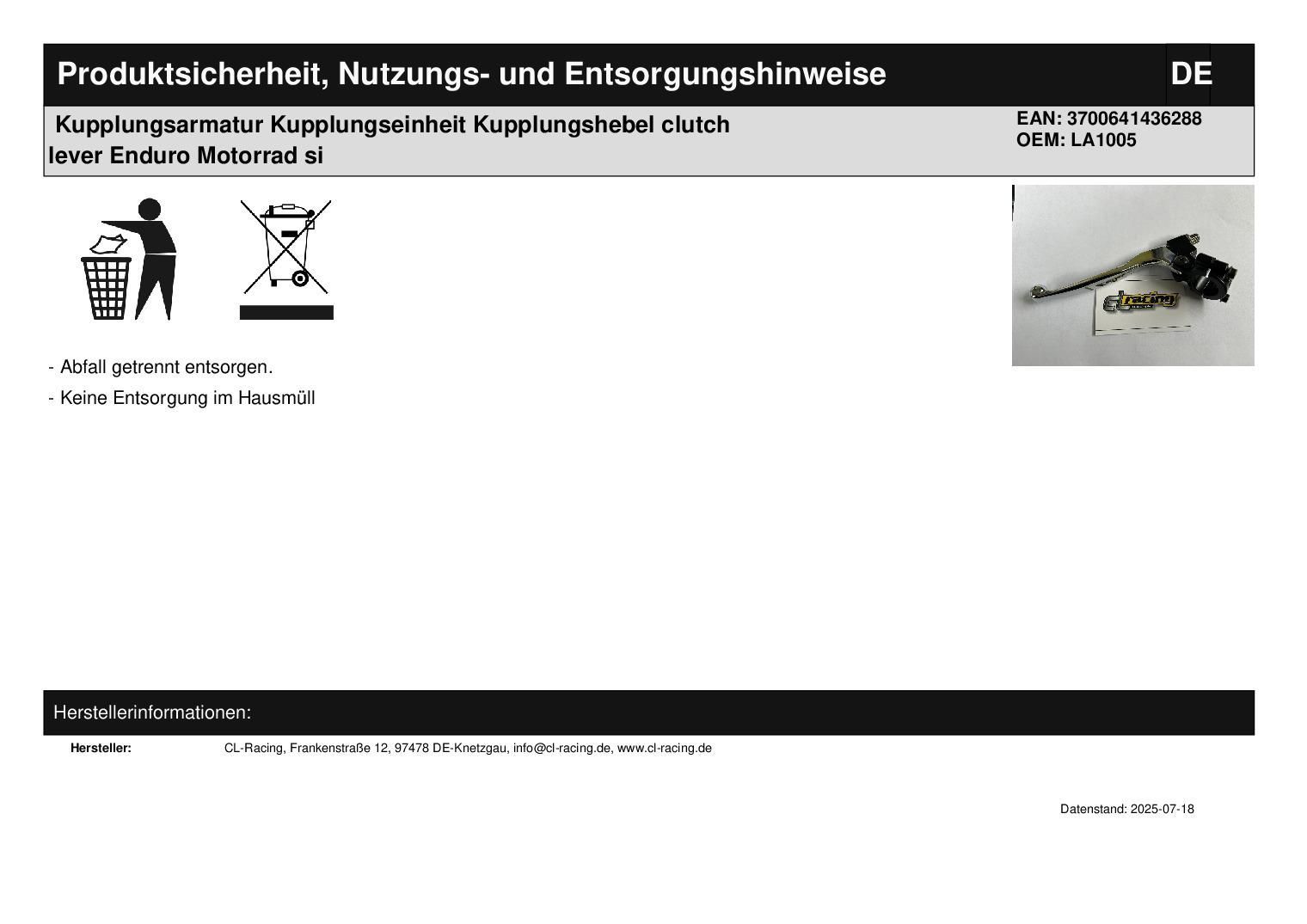 • Keine Entsorgung im Hausmüll