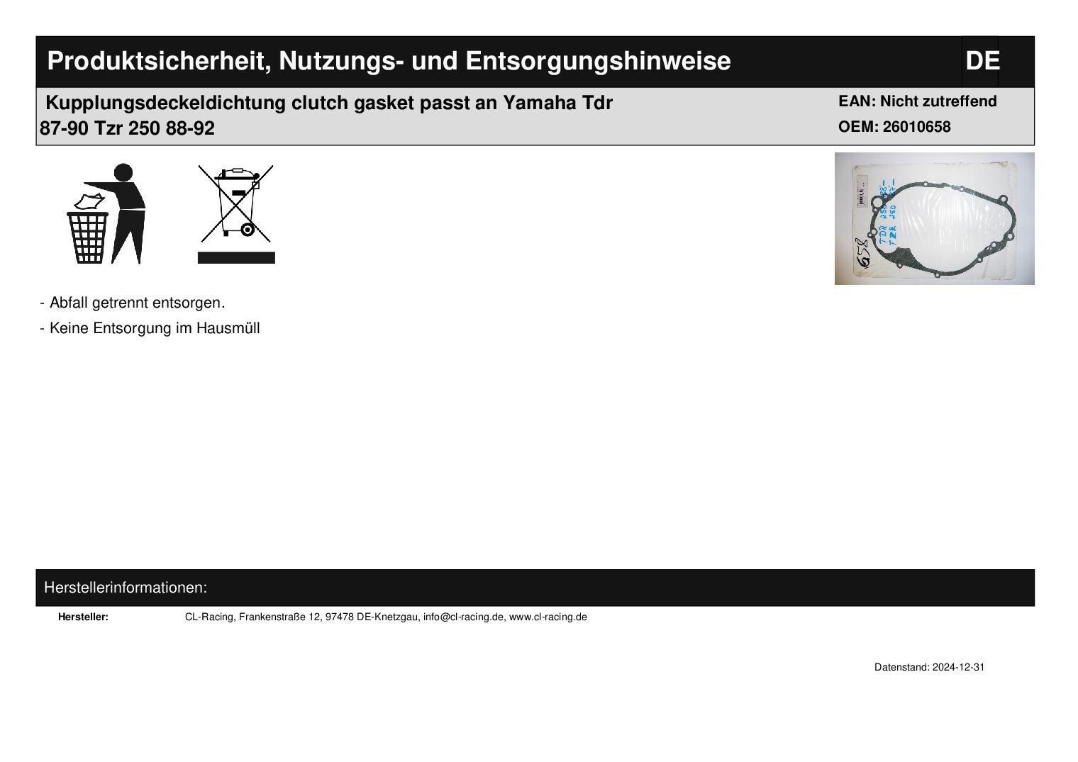 Kupplungsdeckeldichtung clutch gasket passt an Yamaha Tdr 87-90 Tzr 250 88-92