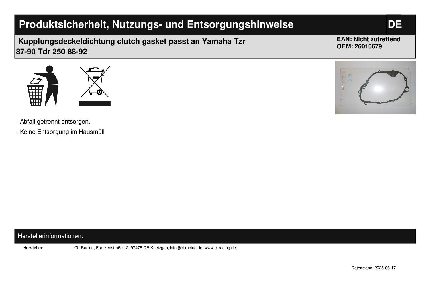 Kupplungsdeckeldichtung clutch gasket passt an Yamaha Tzr 87-90 Tdr 250 88-92
