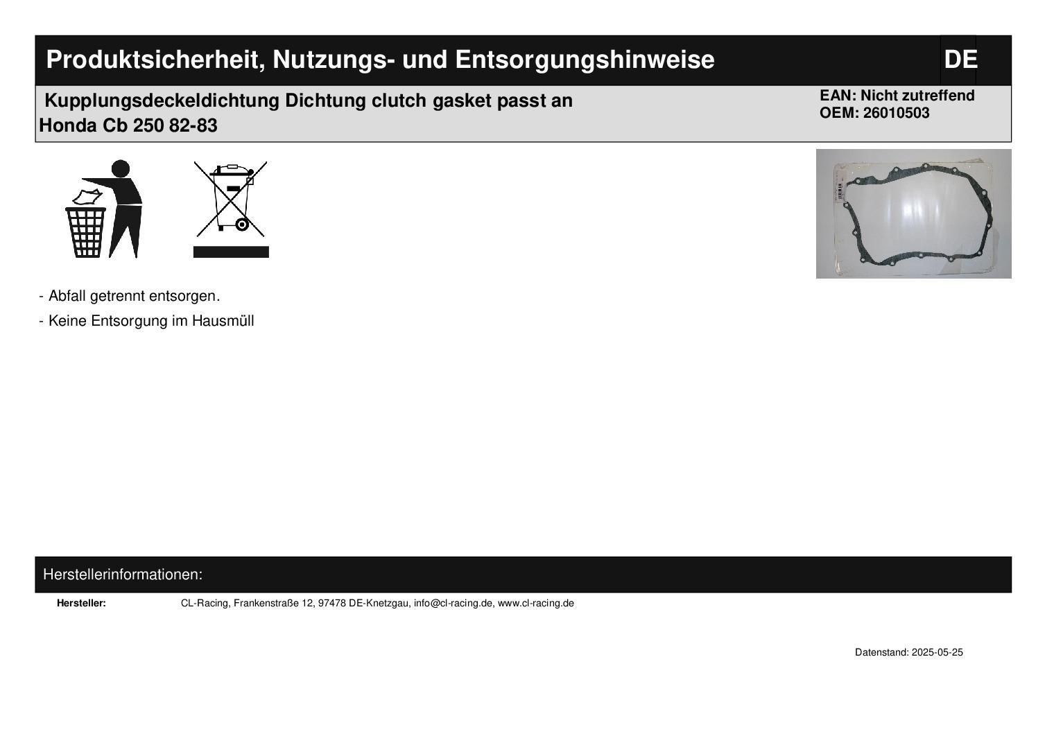 Kupplungsdeckeldichtung Dichtung clutch gasket passt an Honda Cb 250 82-83