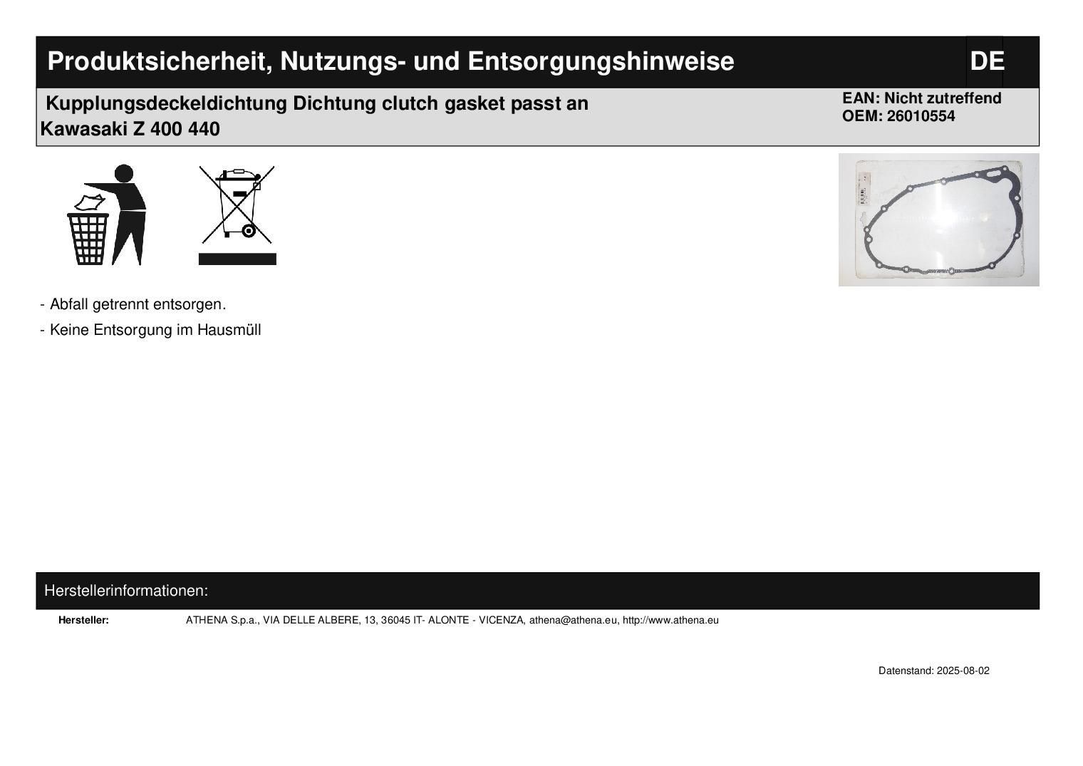 Kupplungsdeckeldichtung Dichtung clutch gasket passt an Kawasaki Z 400 440