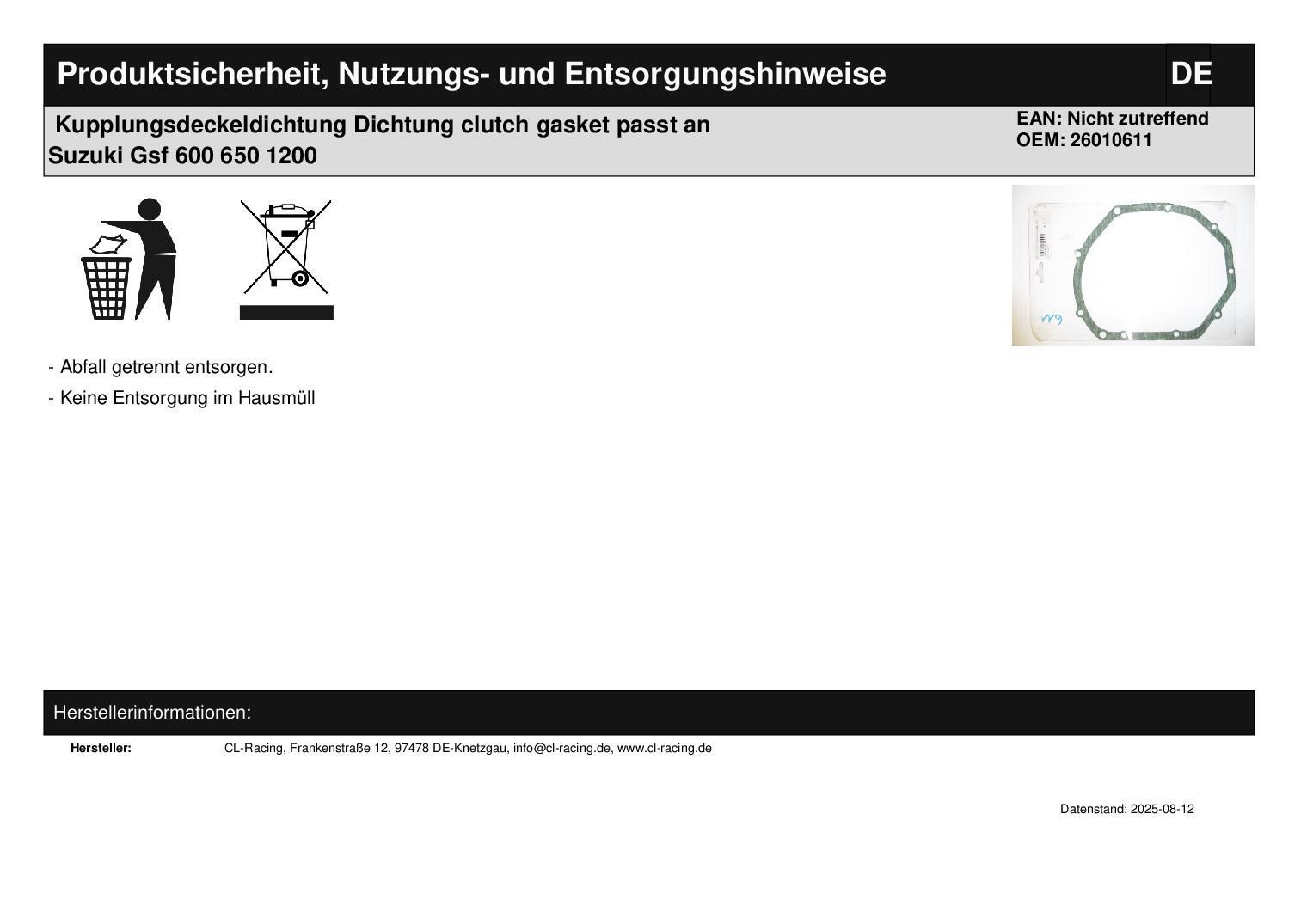 Kupplungsdeckeldichtung Dichtung clutch gasket passt an Suzuki Gsf 600 650 1200