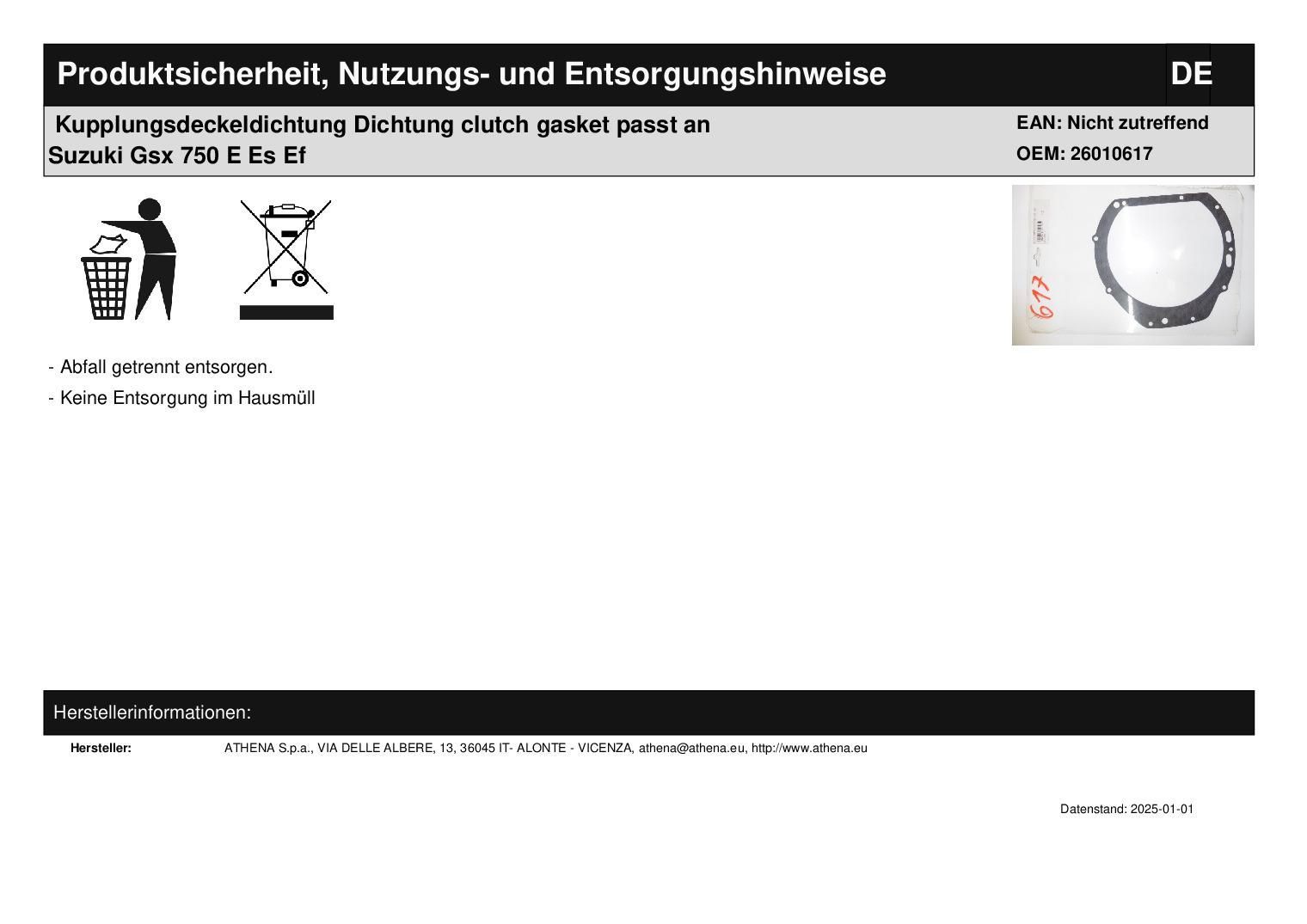Kupplungsdeckeldichtung Dichtung clutch gasket passt an Suzuki Gsx 750 E Es Ef