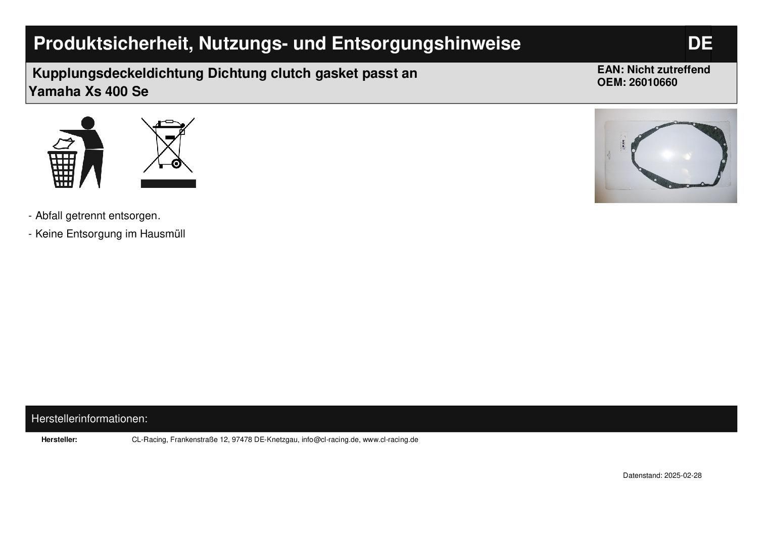 Kupplungsdeckeldichtung Dichtung clutch gasket passt an Yamaha Xs 400 Se