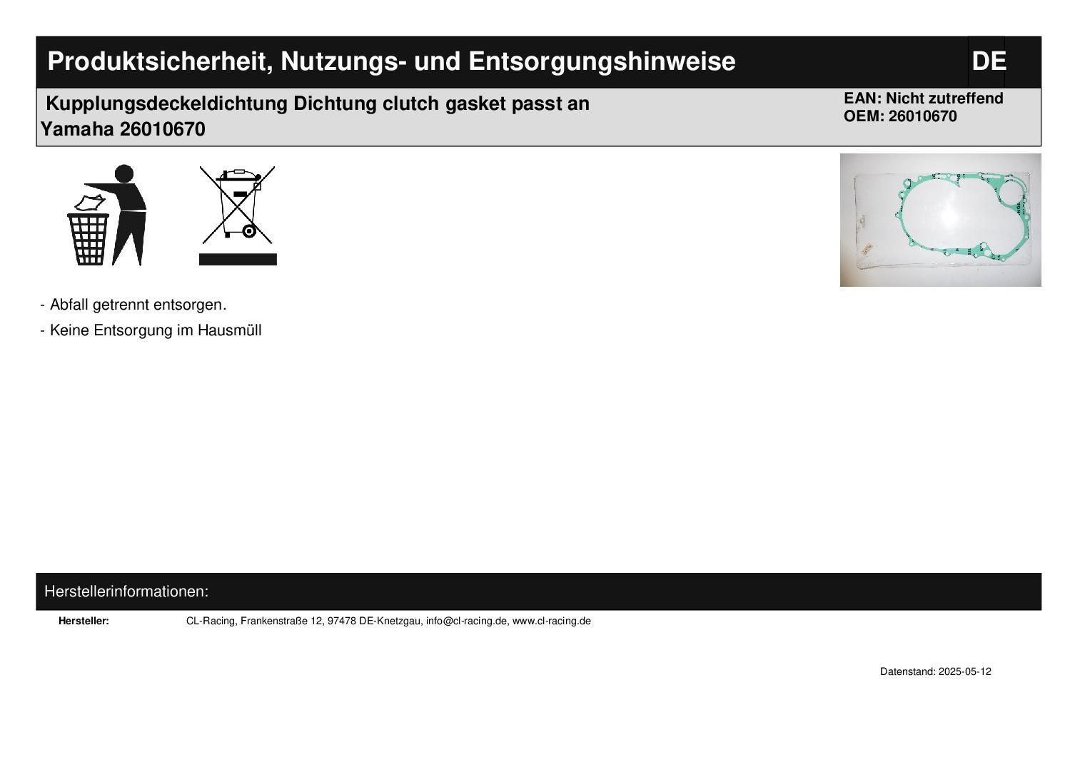 Kupplungsdeckeldichtung Dichtung clutch gasket passt an Yamaha Xv 1000 81-88