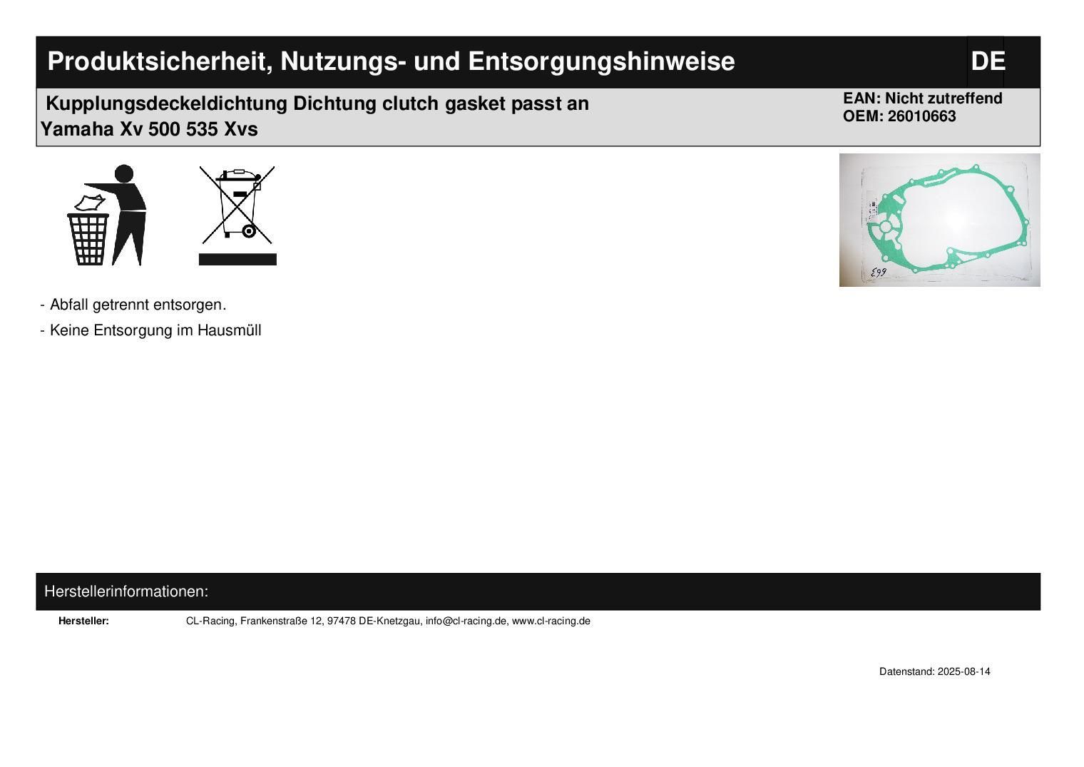 Kupplungsdeckeldichtung Dichtung clutch gasket passt an Yamaha Xv 500 535 Xvs