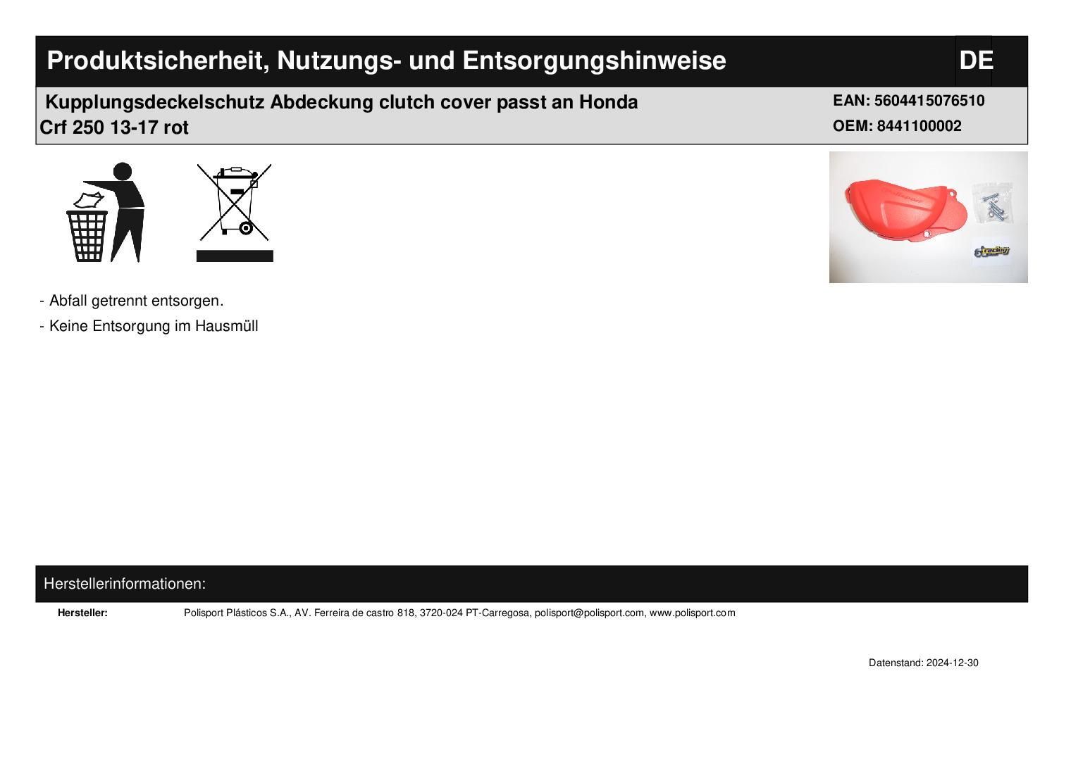 Polisport Kupplungsdeckelschutz Abdeckung clutch cover passt an Honda Crf 250 13-17 rot
