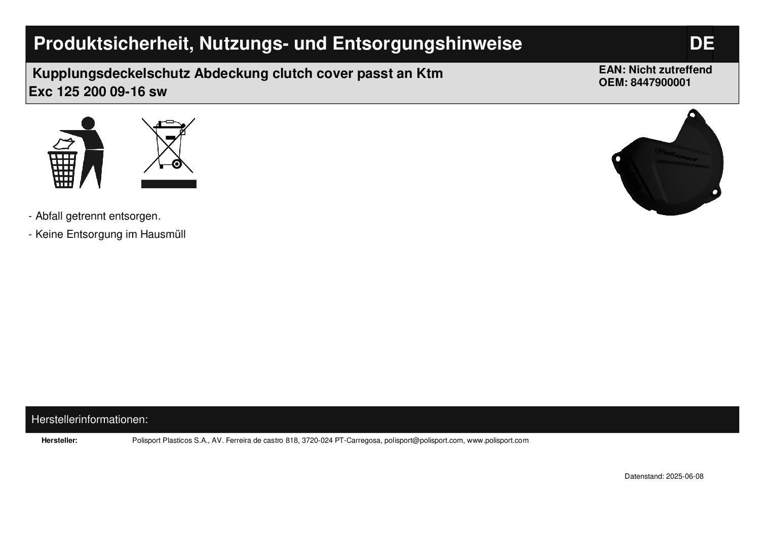Kupplungsdeckelschutz Abdeckung clutch cover passt an Ktm Exc 125 200 09-16 sw