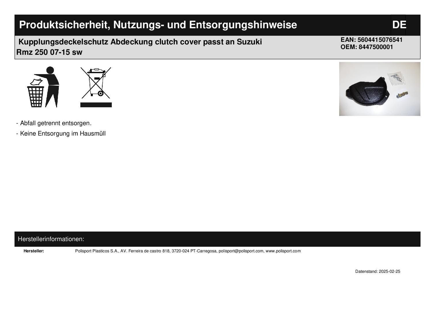 Polisport Kupplungsdeckelschutz Abdeckung clutch cover passt an Suzuki Rmz 250 07-15 sw