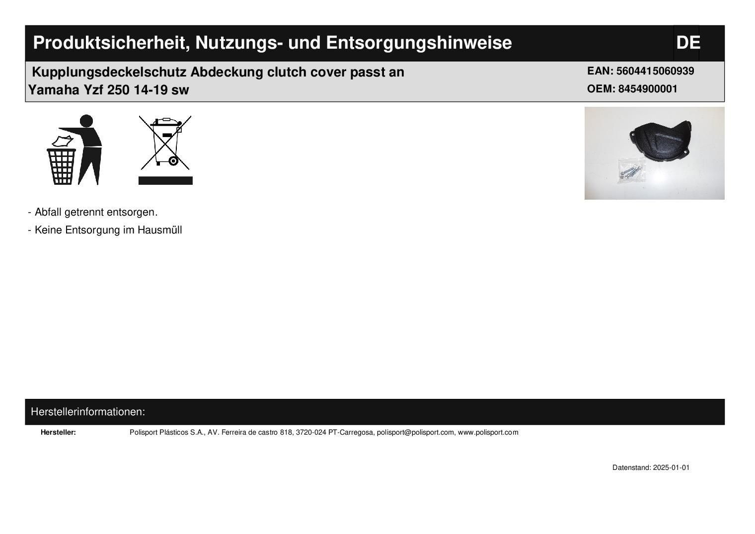 Polisport Kupplungsdeckelschutz Abdeckung clutch cover passt an Yamaha Yzf 250 14-19 sw