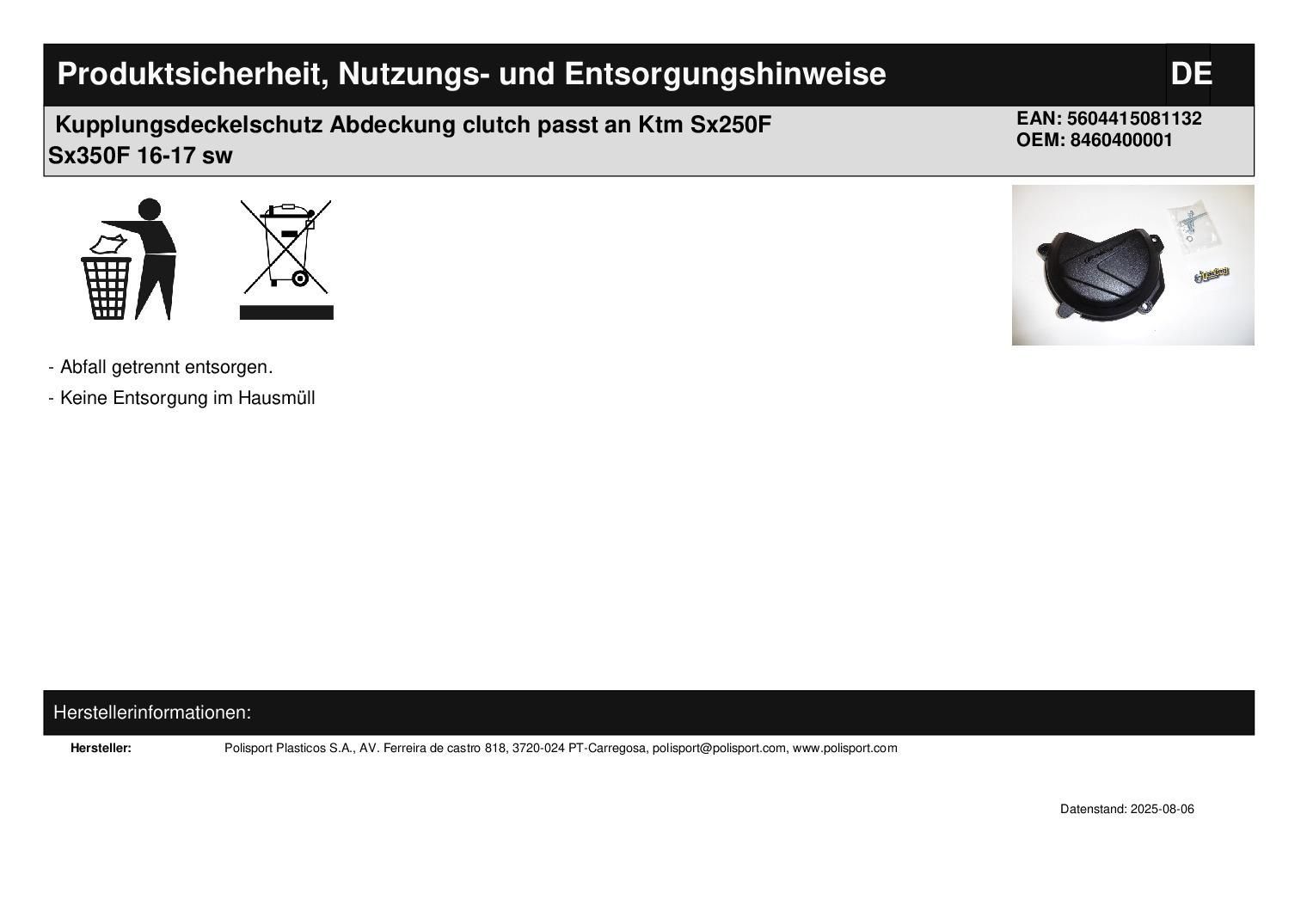Polisport Kupplungsdeckelschutz Abdeckung clutch passt an Ktm Sx250F Sx350F 16-17 sw