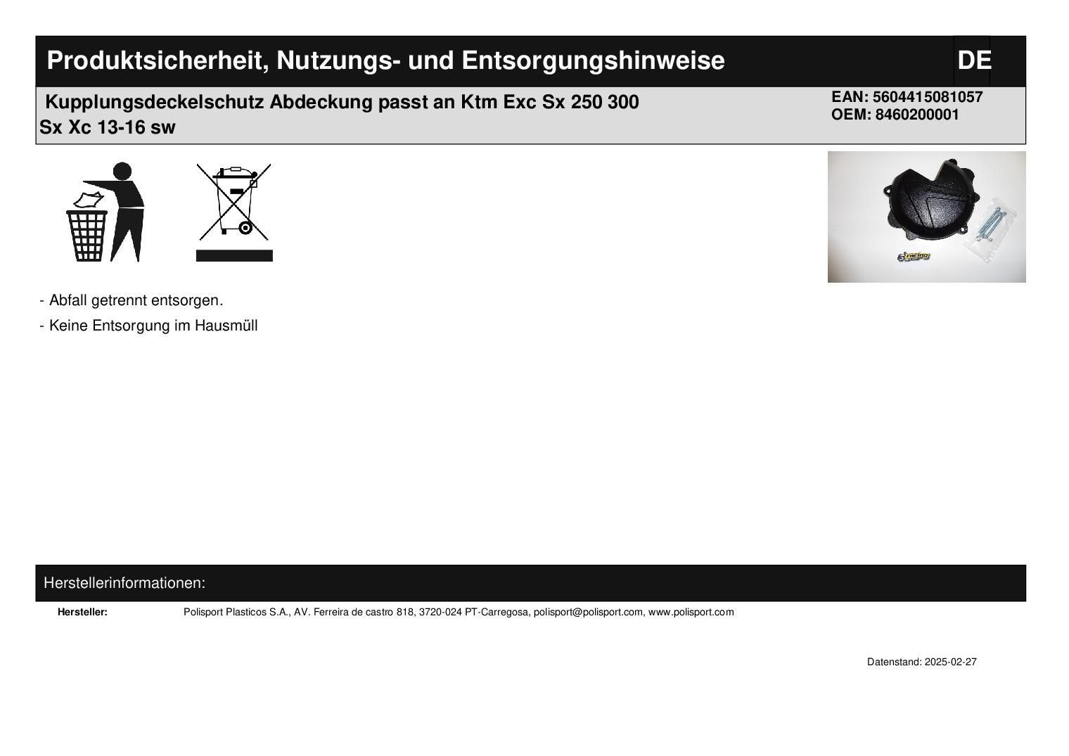 Polisport Kupplungsdeckelschutz Abdeckung passt an Ktm Exc Sx 250 300 Sx Xc 13-16 sw