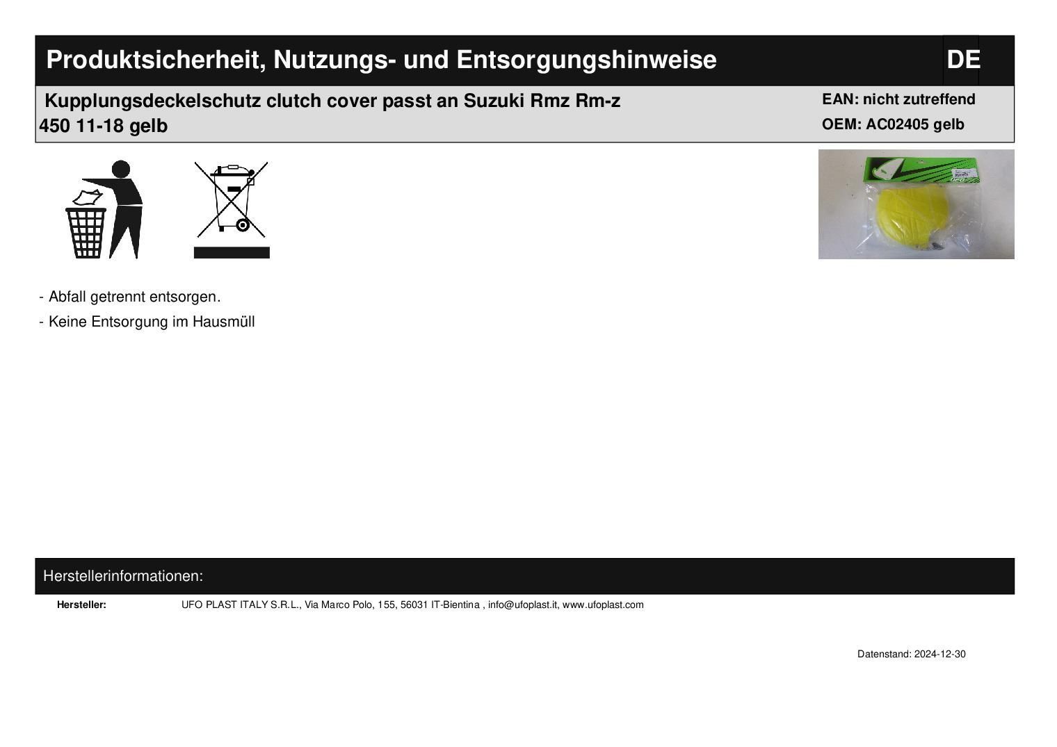 Kupplungsdeckelschutz clutch cover passt an Suzuki Rmz Rm-z 450 11-18 gelb