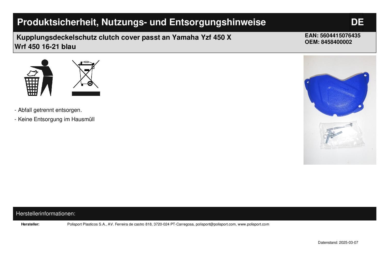 Polisport Kupplungsdeckelschutz clutch cover passt an Yamaha Yzf 450 X Wrf 450 16-21 blau