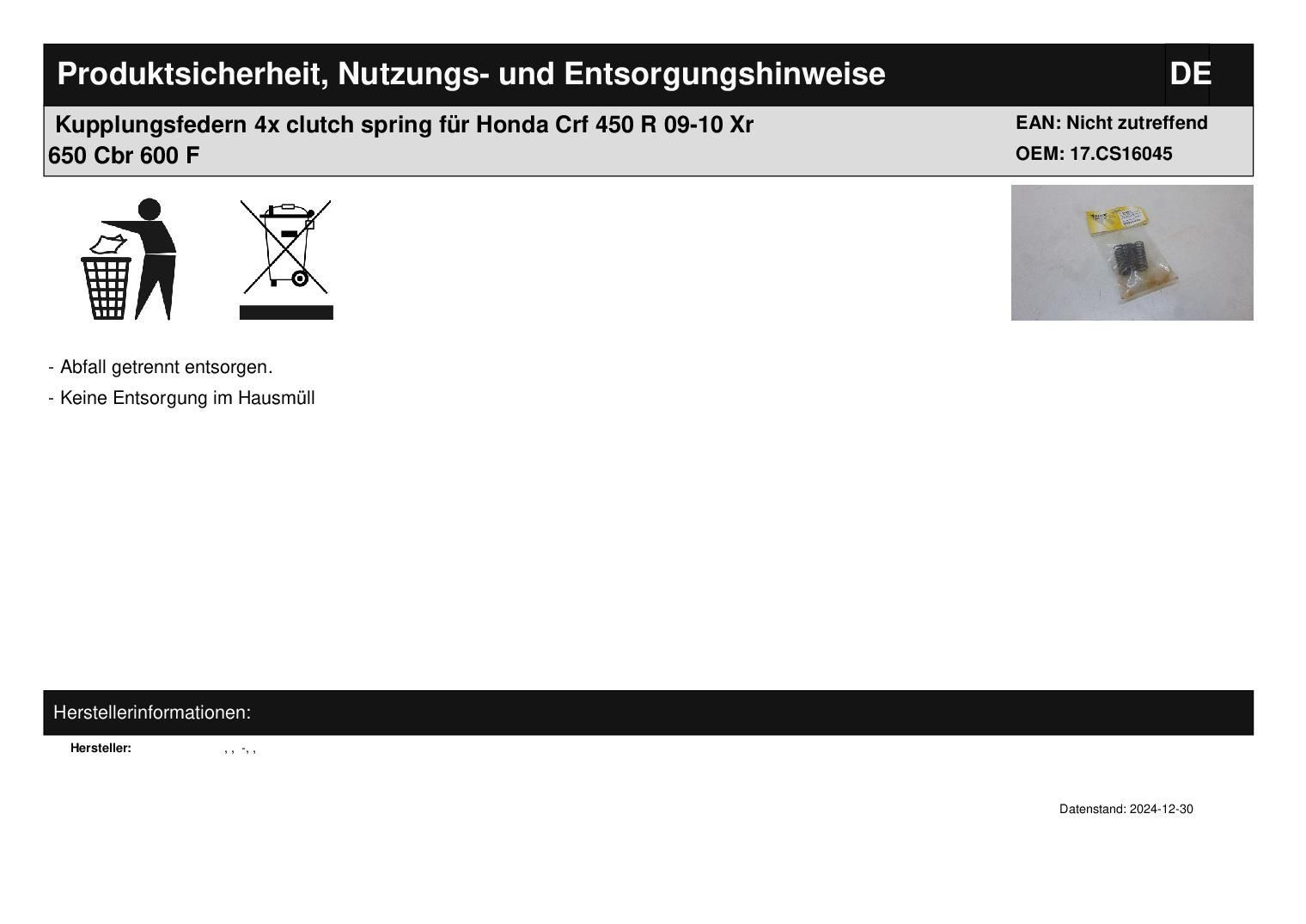 Kupplungsfedern 4x clutch spring passt an Honda Crf 450 R 09-10 Xr 650 Cbr 600 F