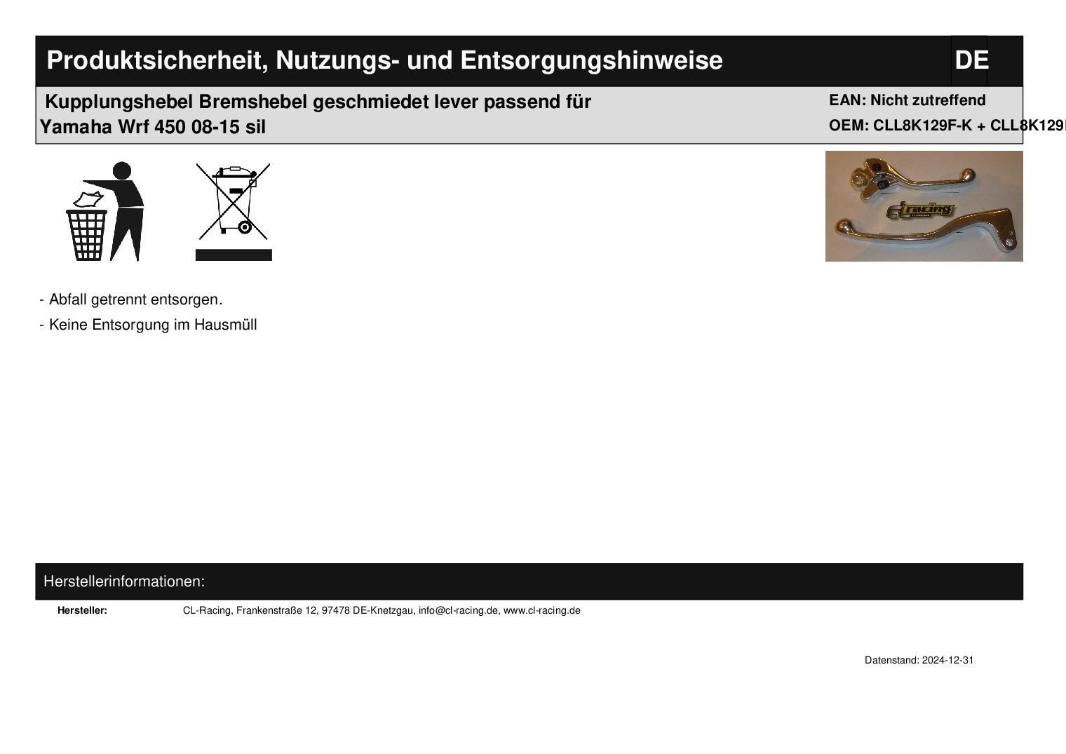 Kupplungshebel Bremshebel geschmiedet lever passt an Yamaha Wrf 450 08-15 silber