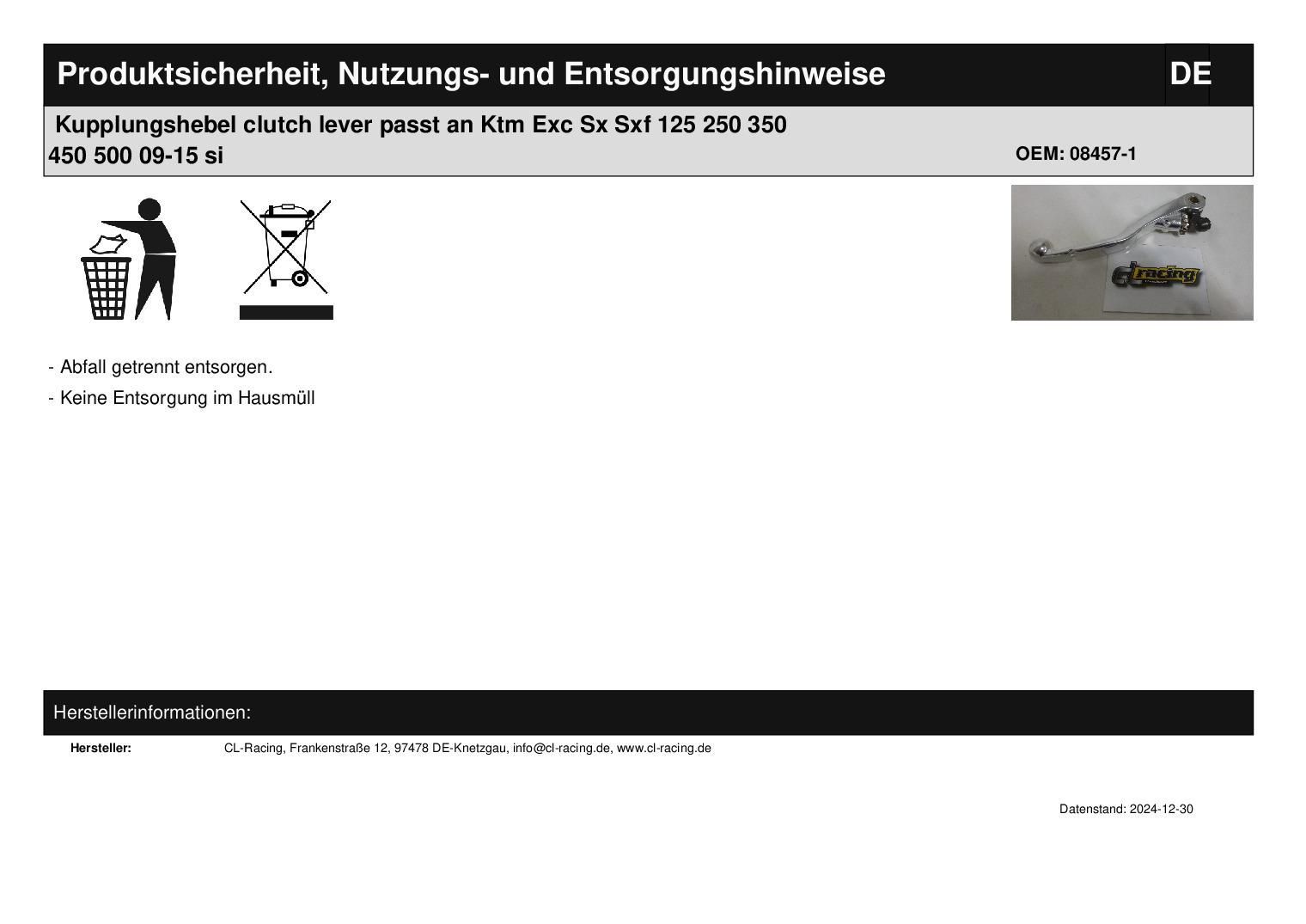 Kupplungshebel clutch lever passt an Ktm Exc Sx Sxf 125 250 350 450 500 09-15 si In dieser Auktion gibt es folgenden Artikel zu kaufen: Kupplungshebel in Erstausrüsterqualität (siehe Foto) Modell: passend für Ktm mit Magura-Hymec-167-Kupplung Exc 125 - 530 Bj.: 2009 - 2016 (2- und 4-Takt) Sx, Sx-f 1