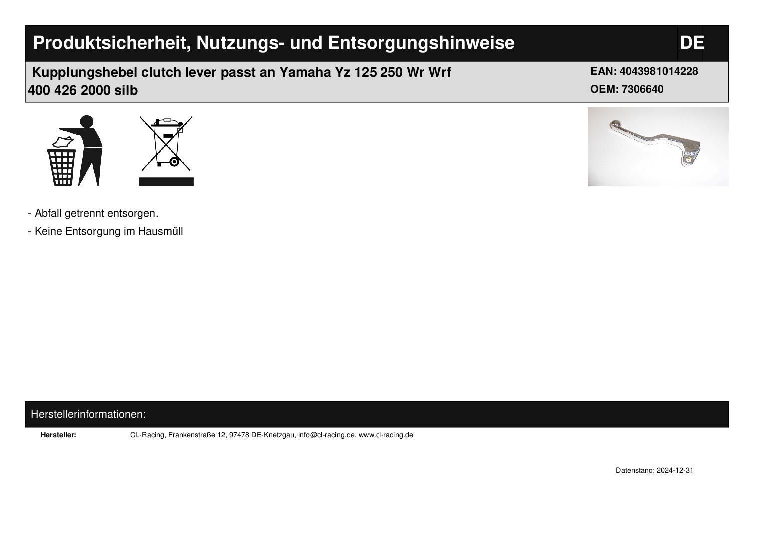 Kupplungshebel clutch lever passt an Yamaha Yz 125 250 Wr Wrf 400 426 2000 silb