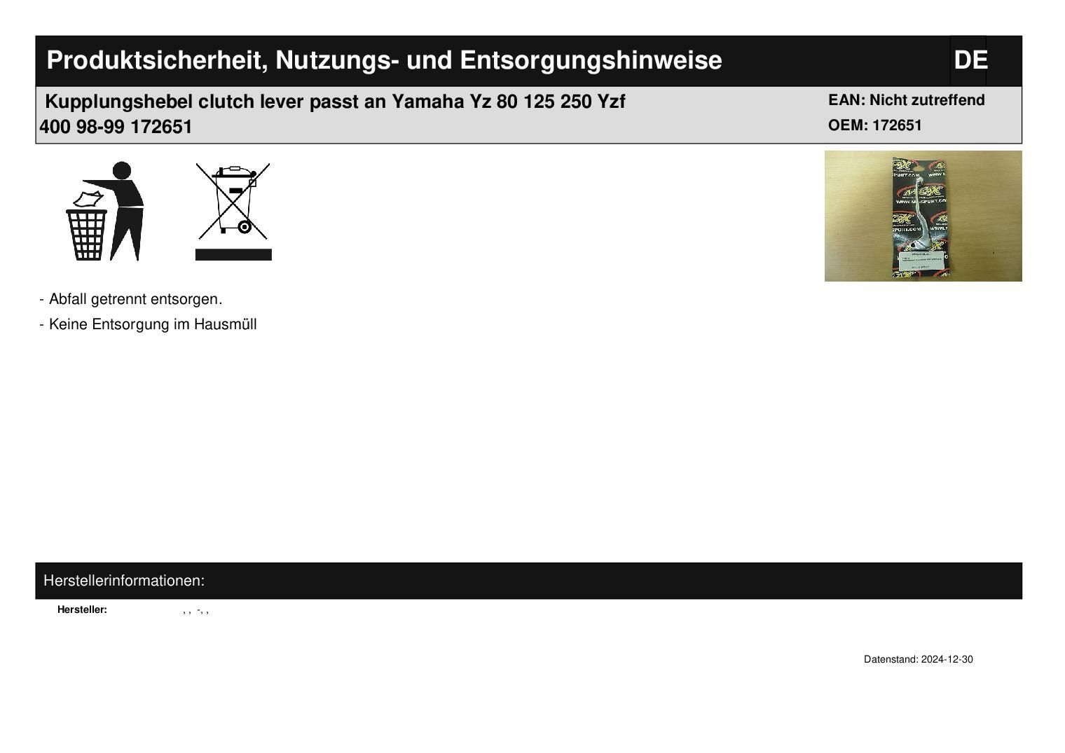 Kupplungshebel clutch lever passt an Yamaha Yz 80 125 250 Yzf 400 98-99 172651