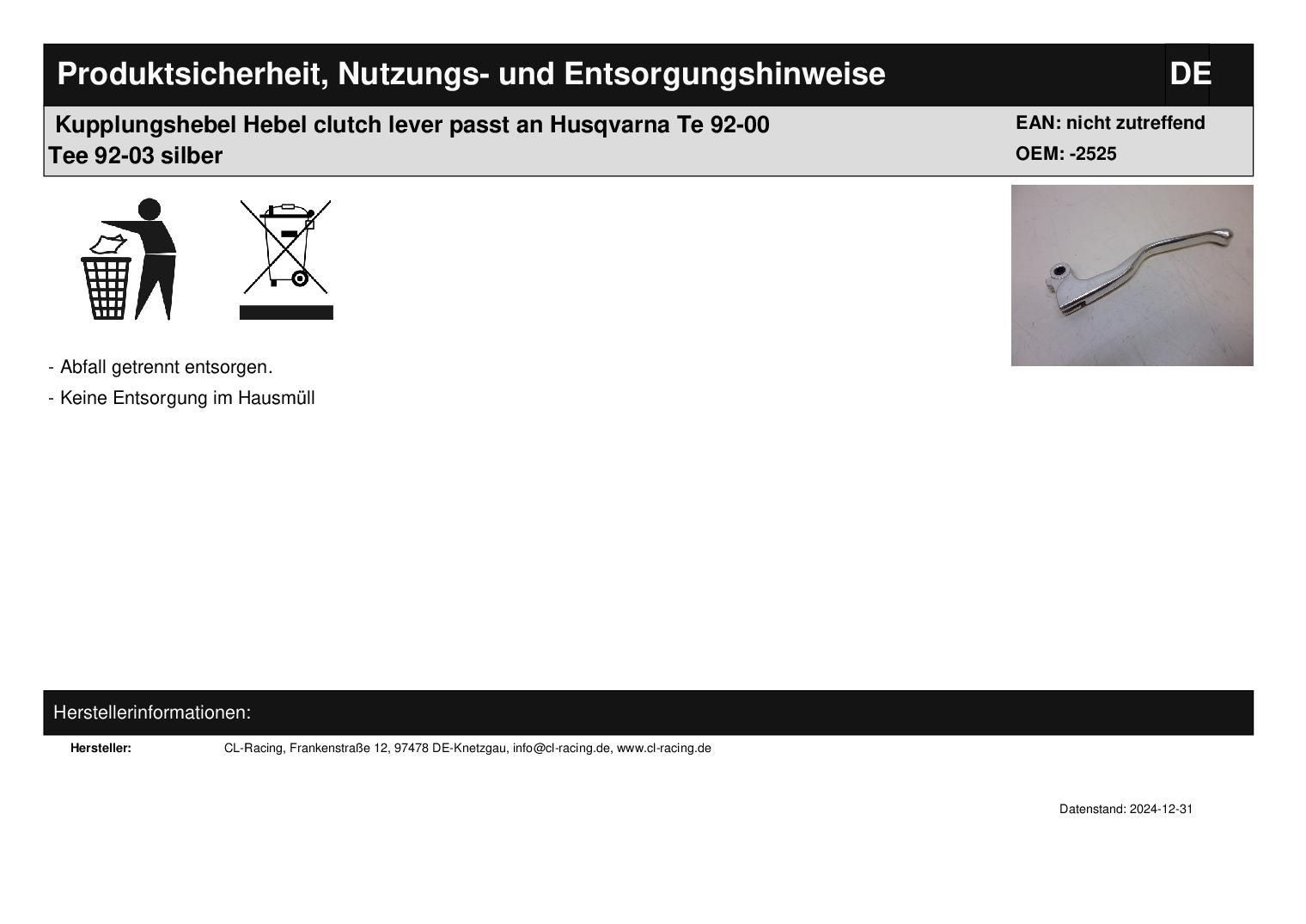 Kupplungshebel Hebel clutch lever passt an Husqvarna Te 92-00 Tee 92-03 silber