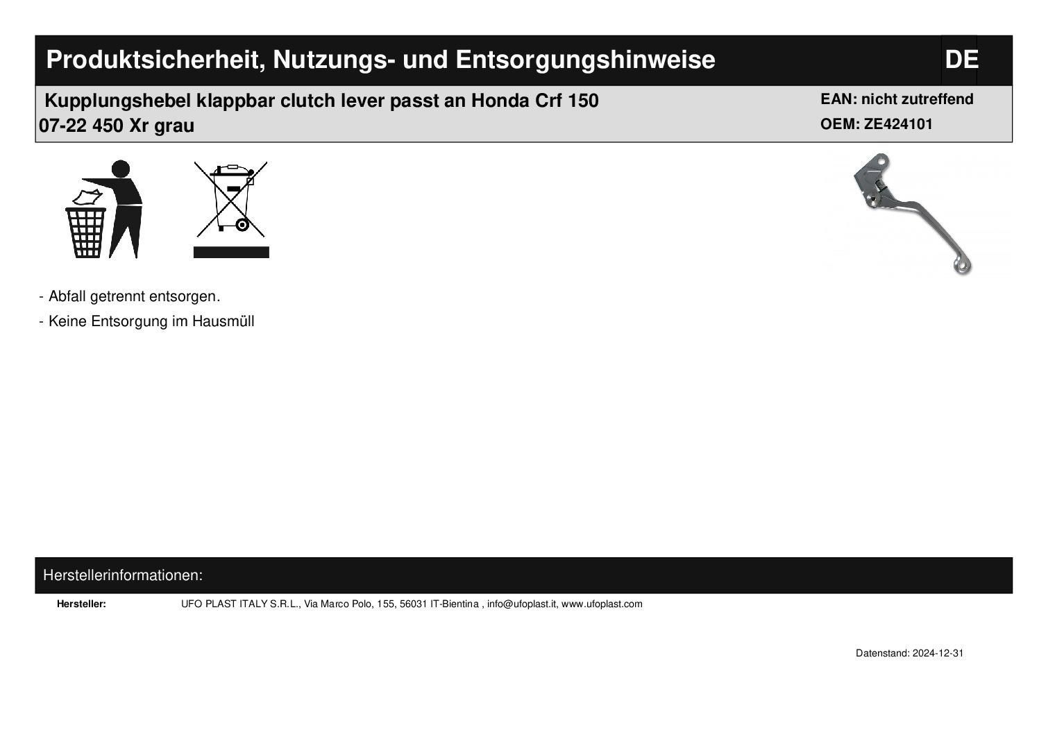 Kupplungshebel klappbar clutch lever passt an Honda Crf 150 07-22 450 Xr grau