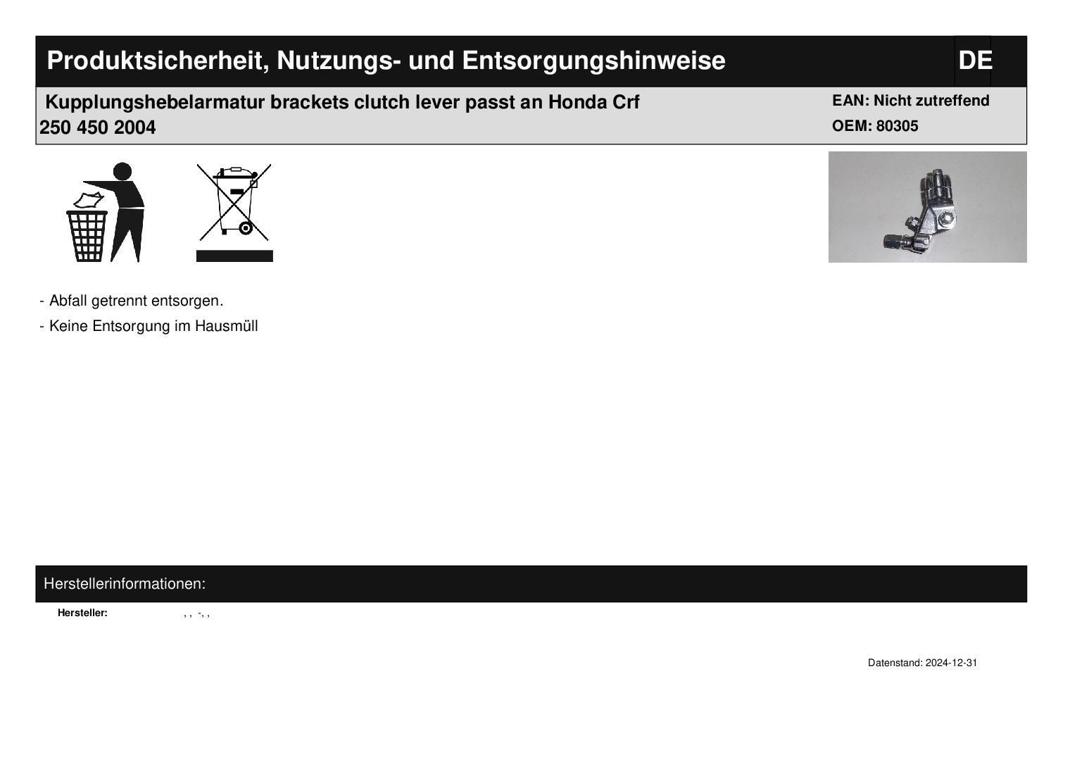 Kupplungshebelarmatur brackets clutch lever passt an Honda Crf 250 450 2004