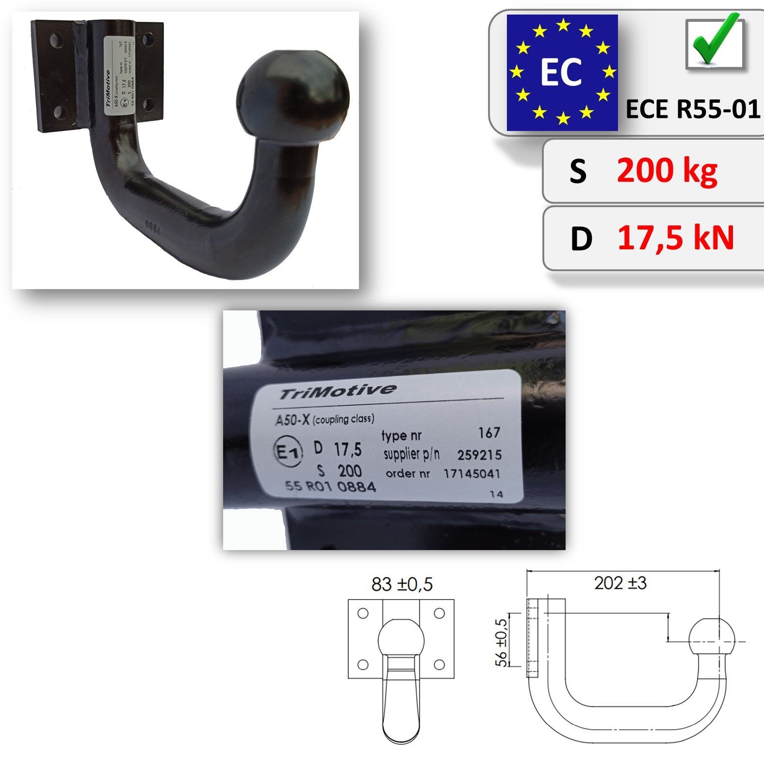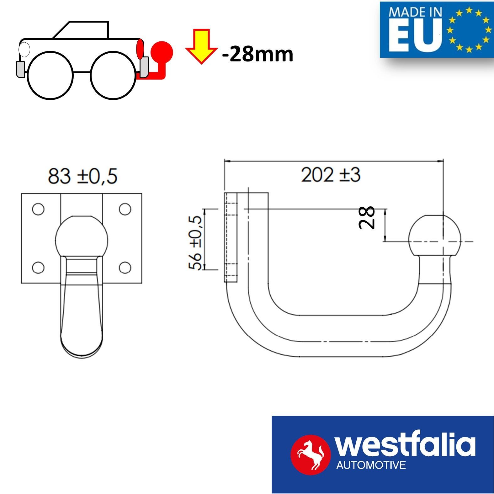 Kupplungskugel mit 4-Loch Halterung Anschraubplatte 56x83mm Ford Ranger II 06-12