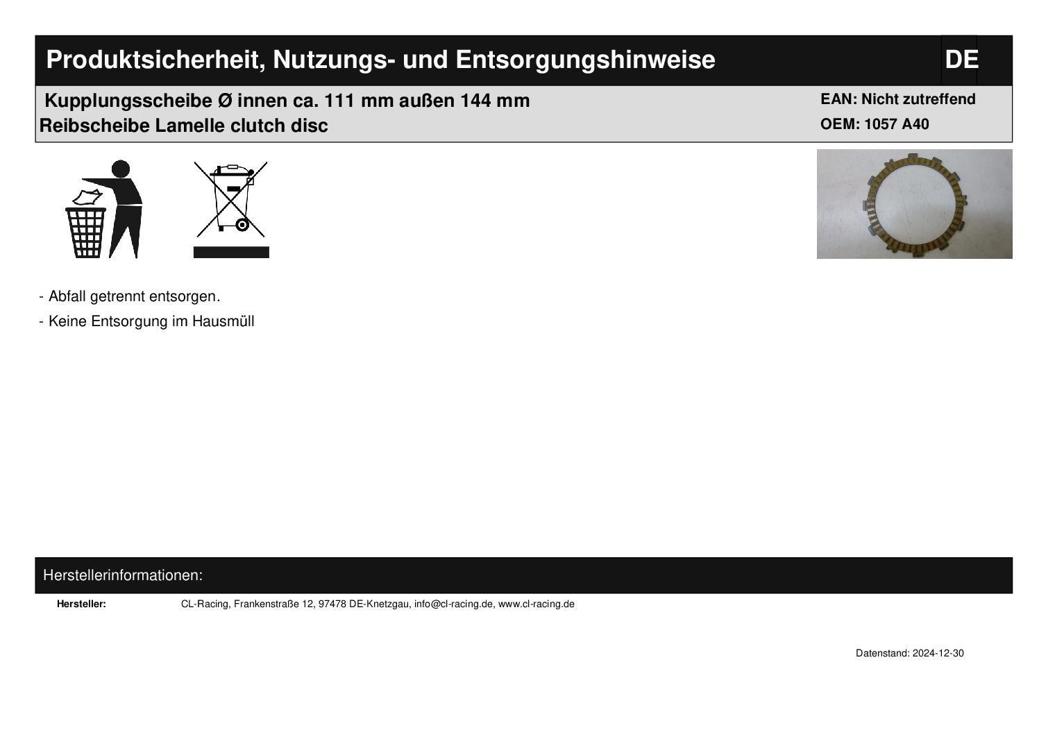 Kupplungsscheibe Ø innen ca. 111 mm außen 144 mm Reibscheibe Lamelle clutch disc