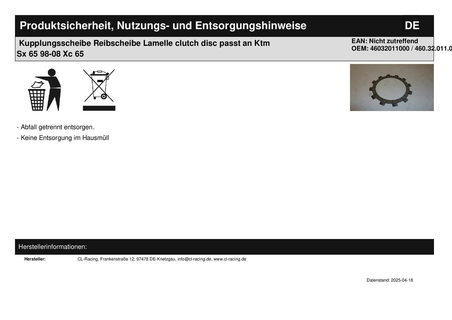 Kupplungsscheibe Reibscheibe Lamelle clutch disc passt an Ktm Sx 65 98-08 Xc 65