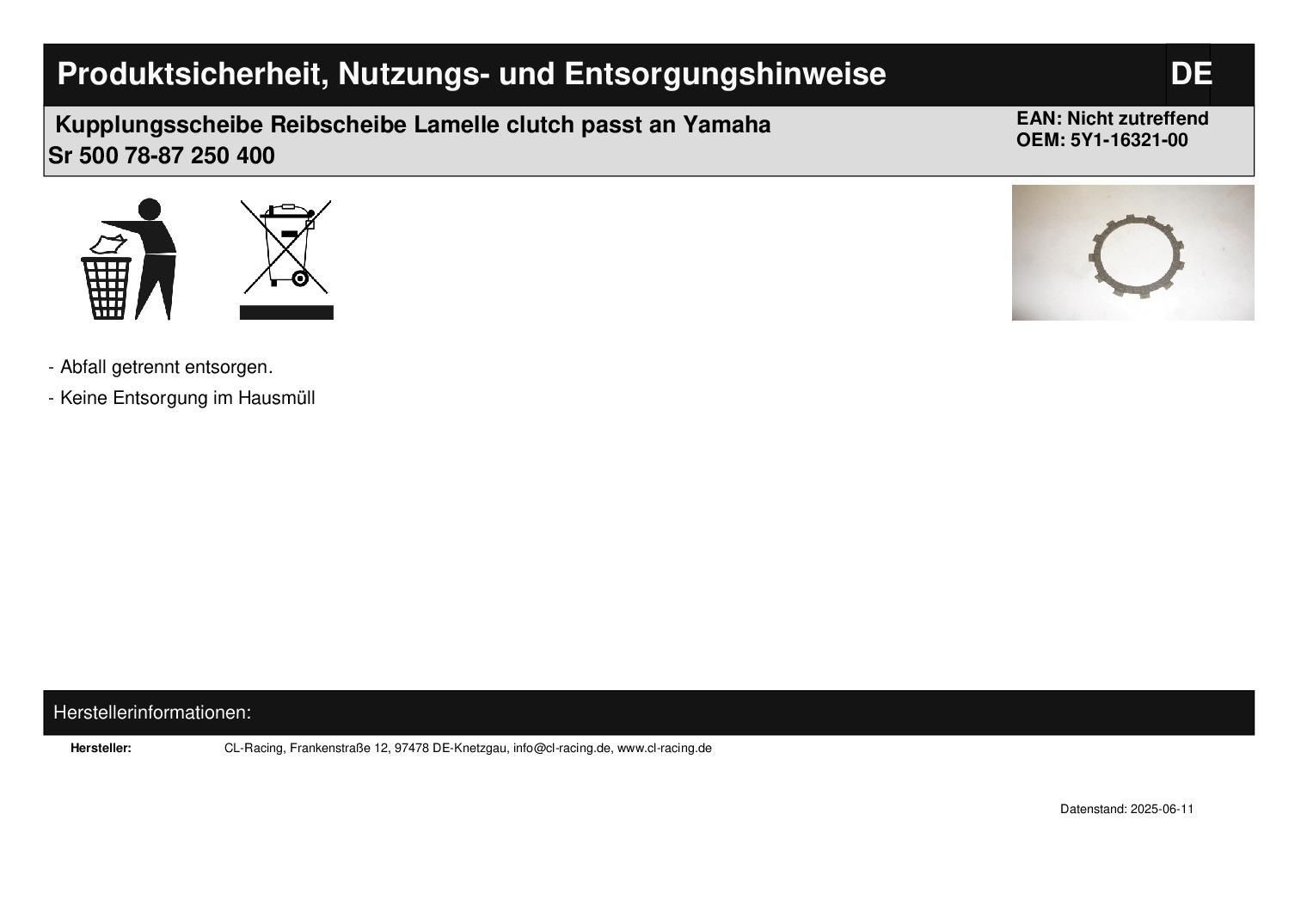 Kupplungsscheibe Reibscheibe Lamelle clutch passt an Yamaha Sr 500 78-87 250 400