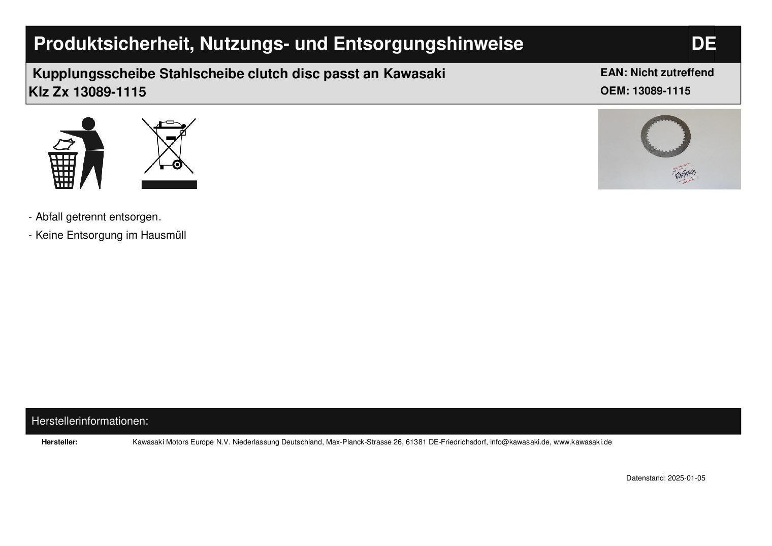Kupplungsscheibe Stahlscheibe clutch disc passt an Kawasaki Klz Zx 13089-1115