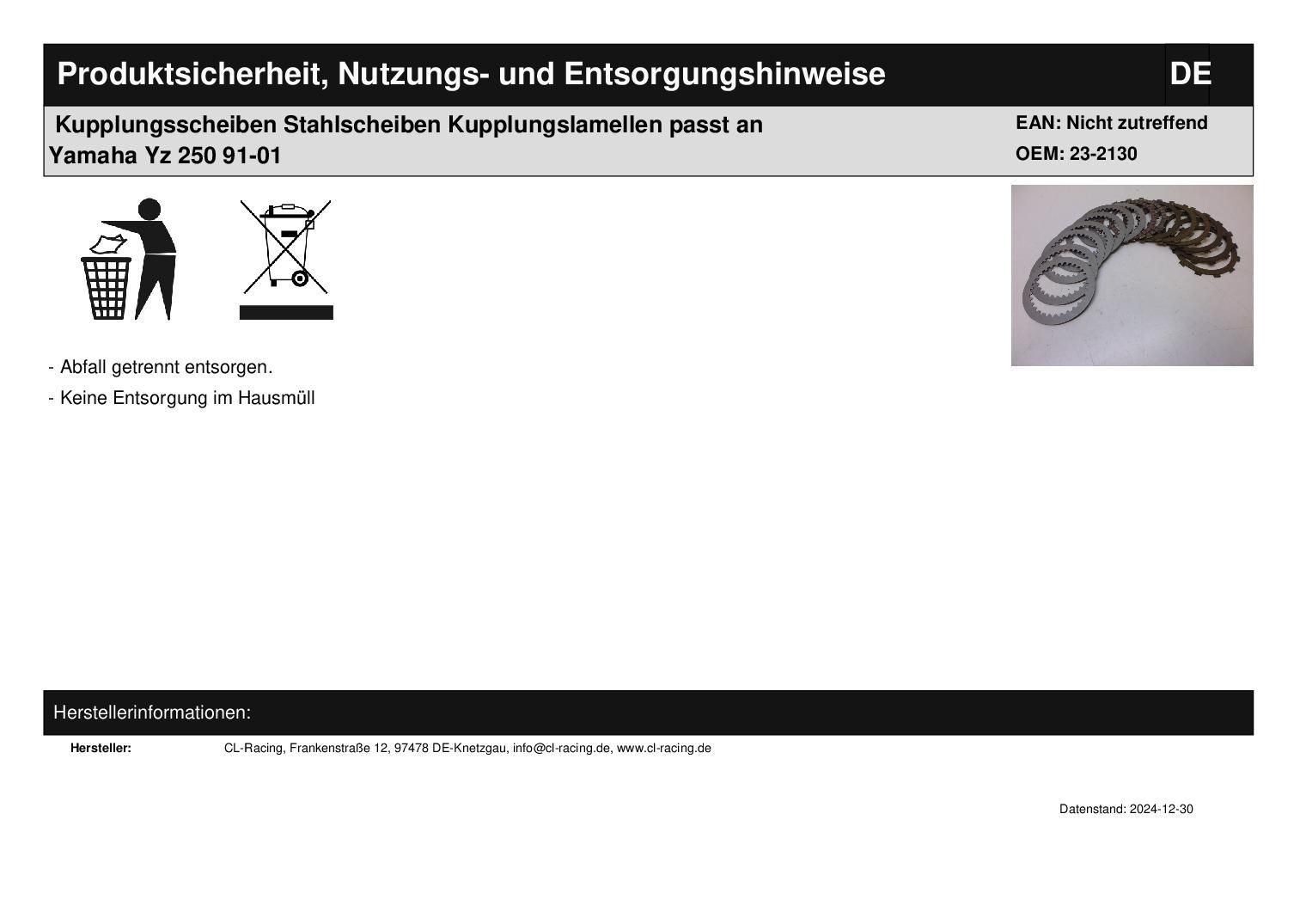 Kupplungsscheiben Stahlscheiben Kupplungslamellen passt an Yamaha Yz 250 91-01