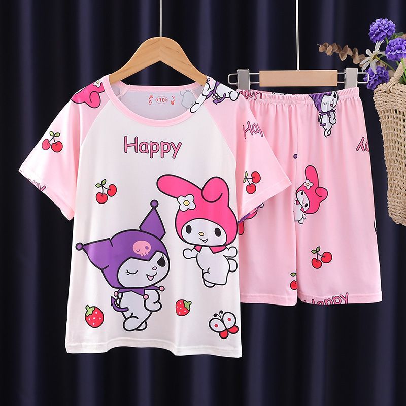 Kuromi Melody Cinnamoroll Schlafanzug Kinder Kurzarm Pyjama 2er Set Loungewear