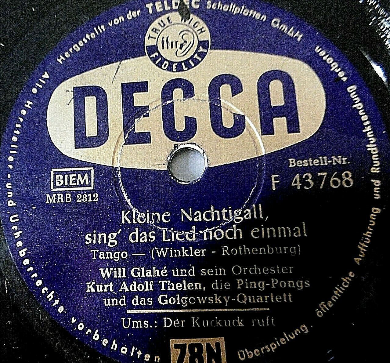 KURT ADOLF THELEN "Kleine Nachtigall, sing das Lied noch einmal" Decca 78rpm 10"